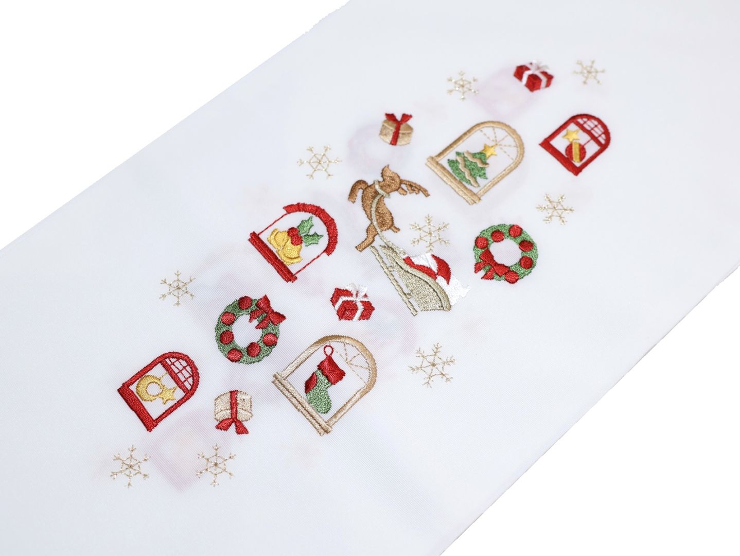 ・刺繍半衿「白色の地にオレンジ色のサンタと白色のトナカイの刺繍」