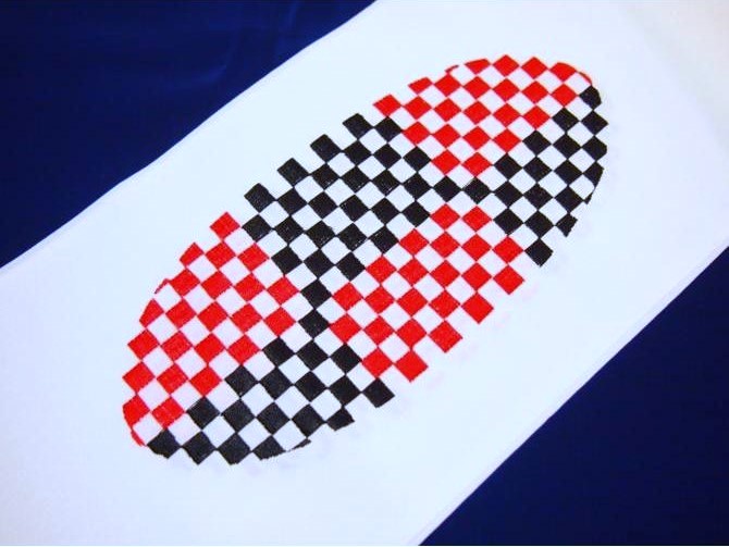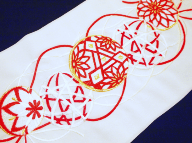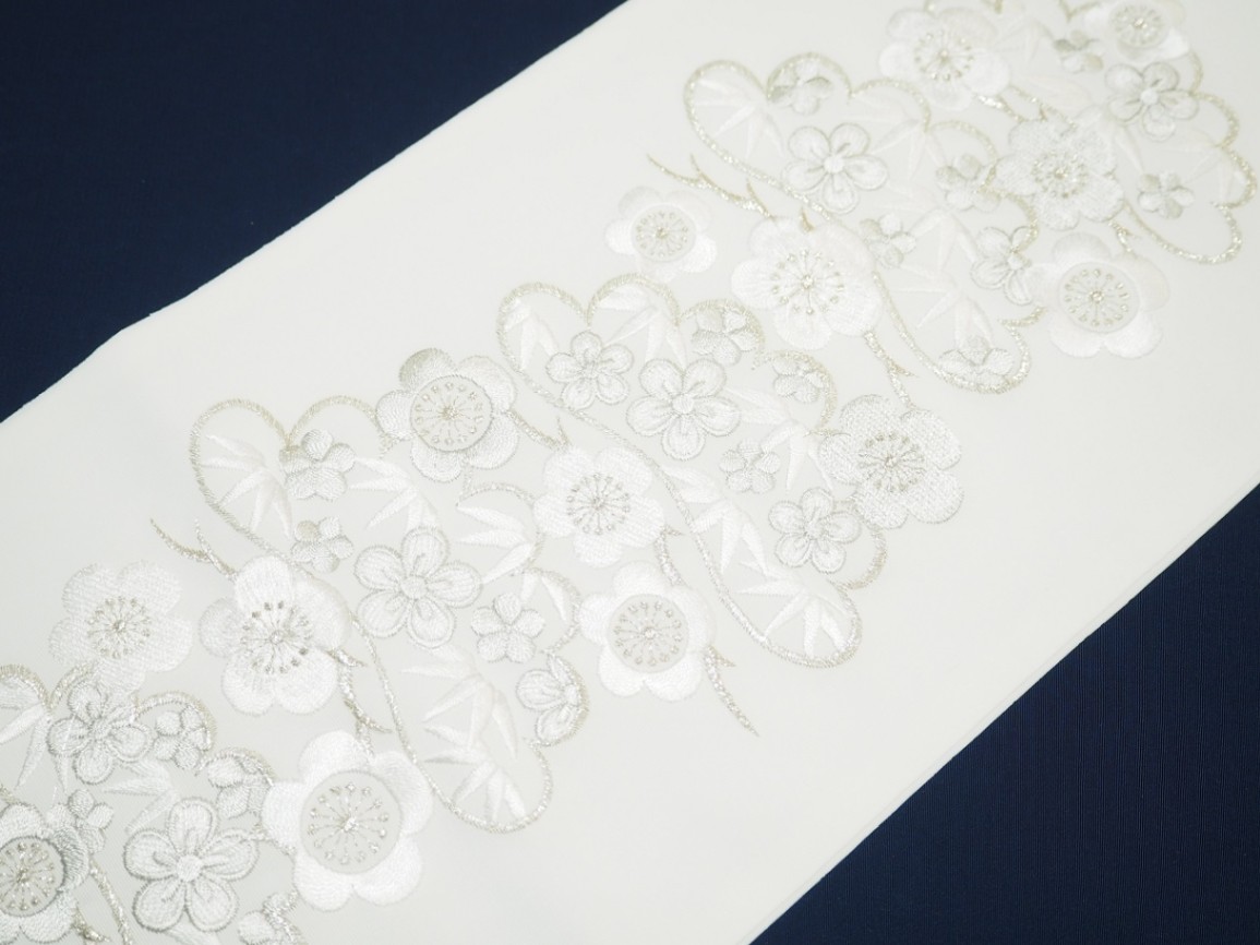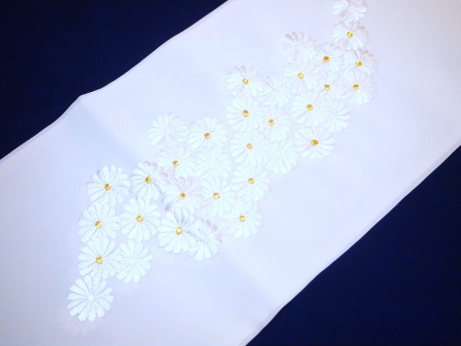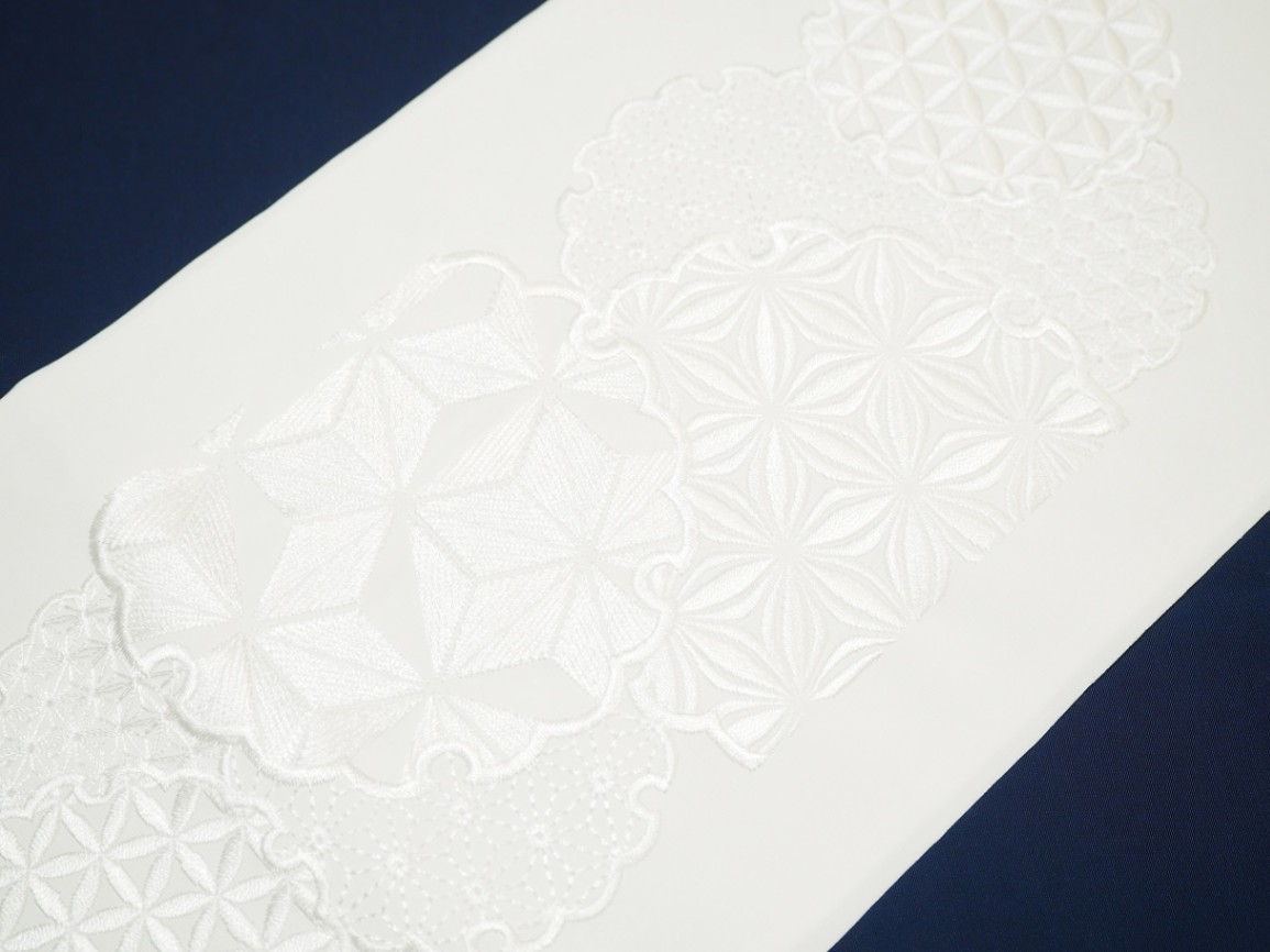 ・片身替わり刺繍半衿「白色の地にチェストアーガイル模様の刺繍」
