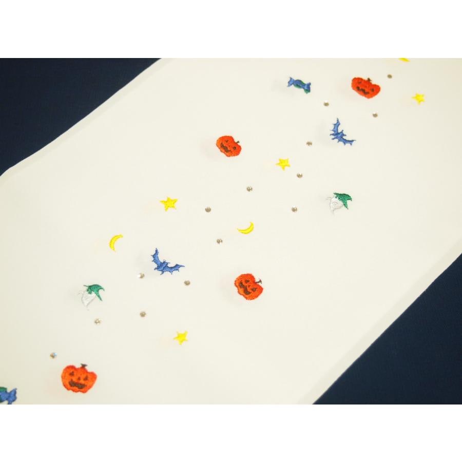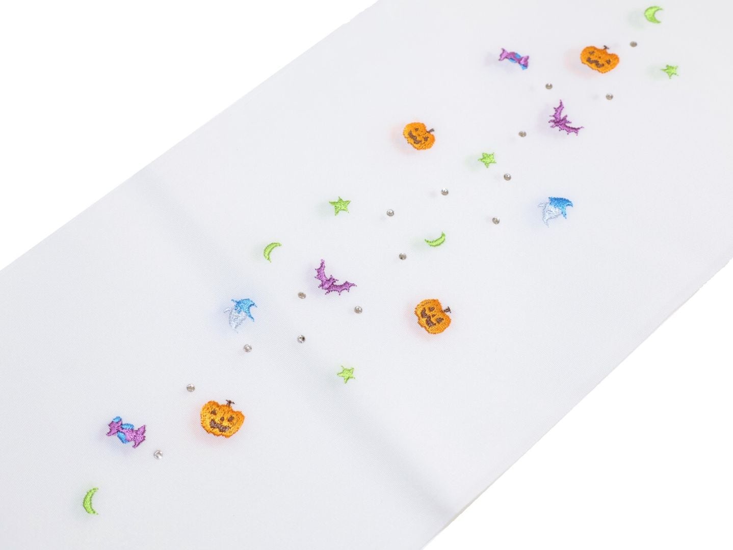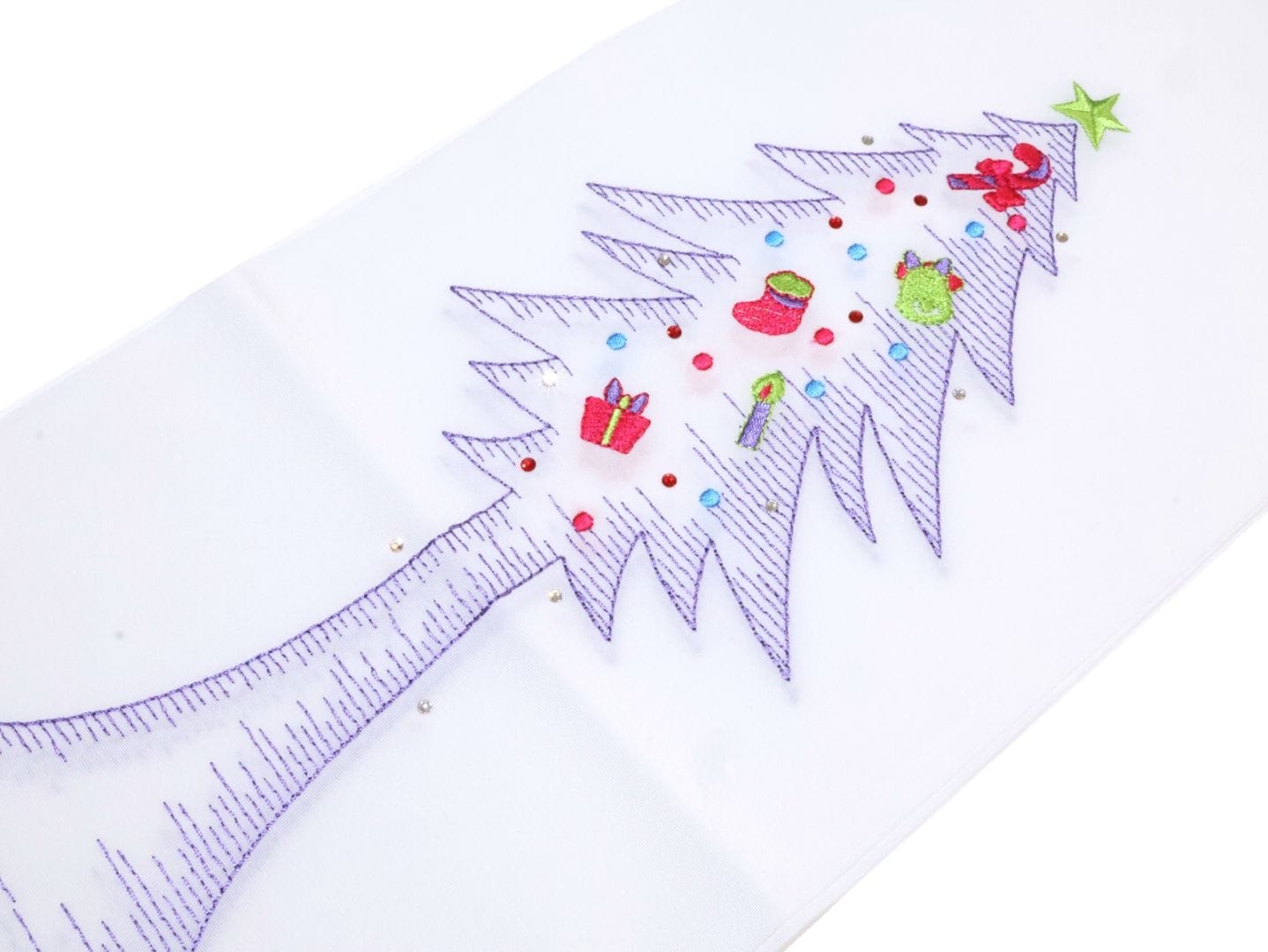 ・刺繍半衿「白色の地に紫色のクリスマスツリー(ラインストーン付)