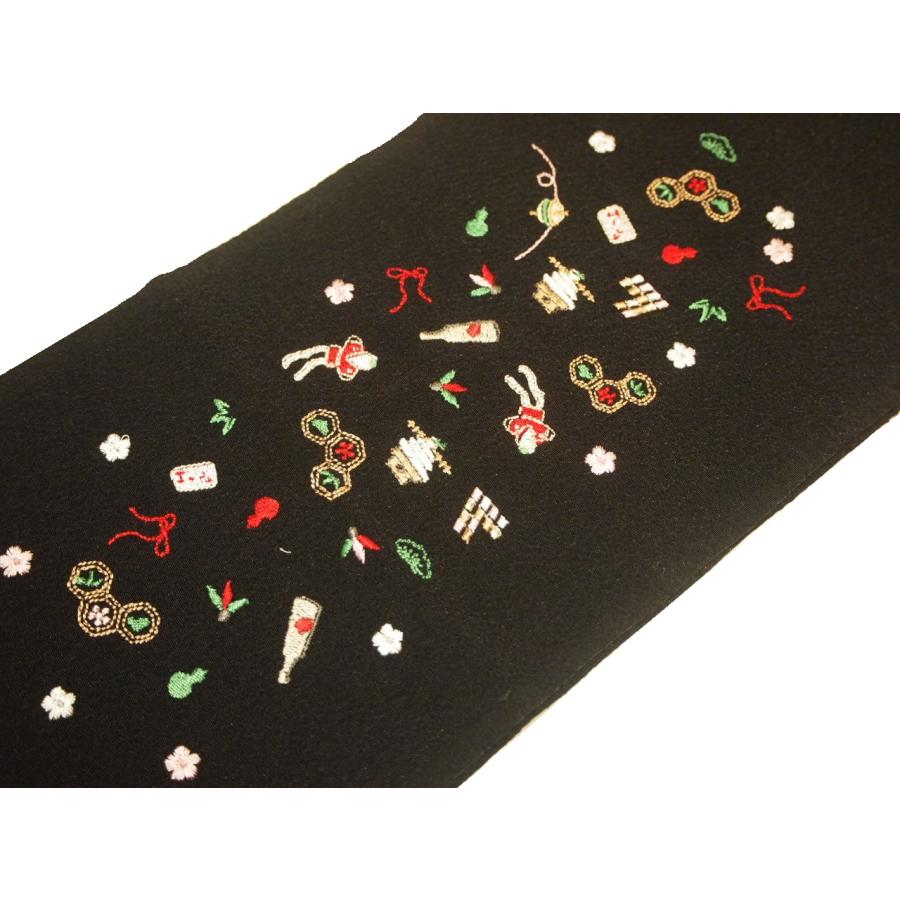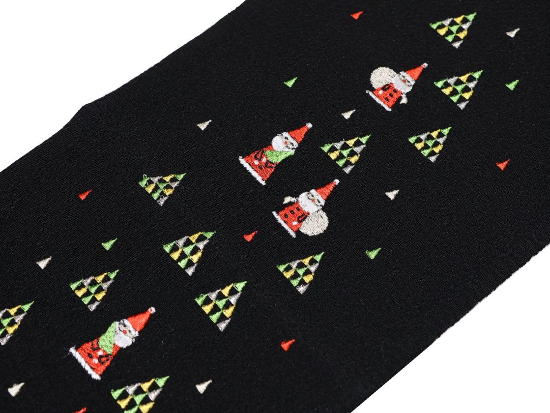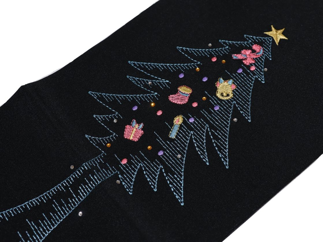 ・刺繍半衿「黒色の地に濃い緑色のクリスマスツリー(ラインストーン付)」