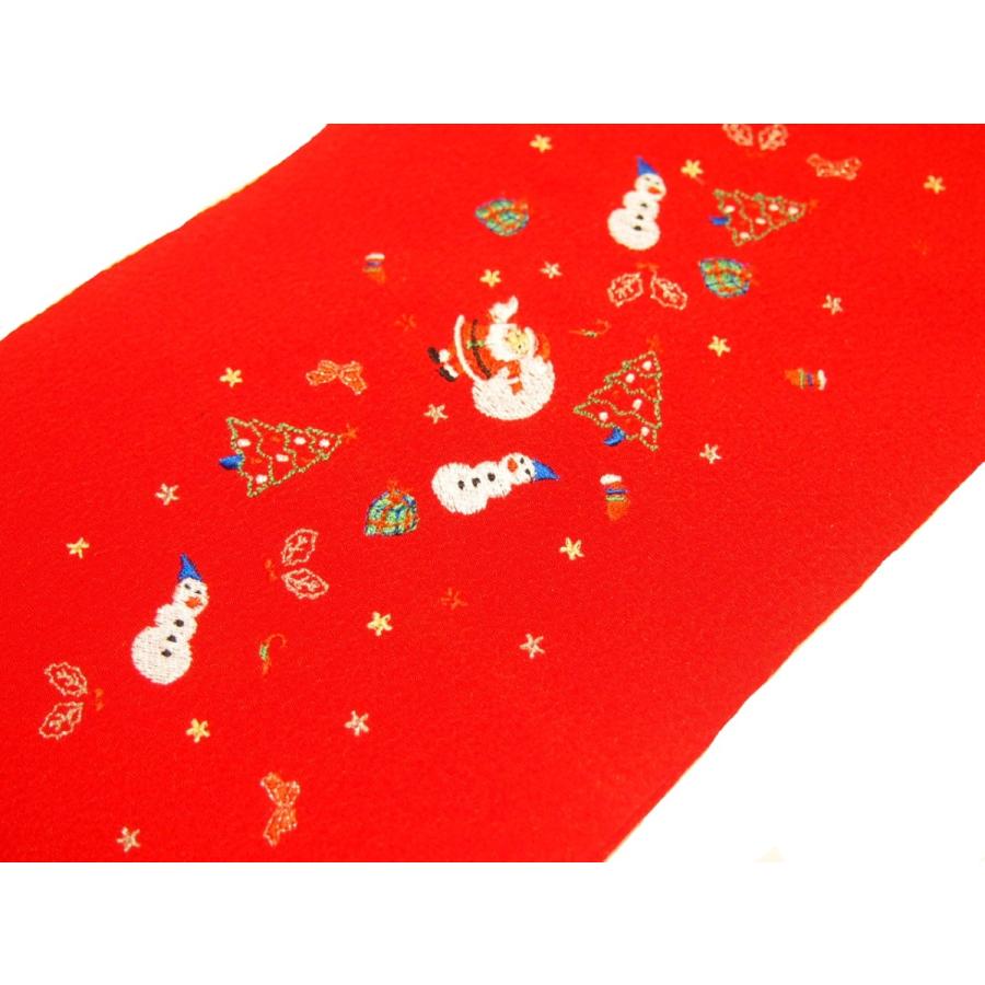 刺繍半衿「赤色の地に薄灰緑色のクリスマスツリー(ラインストーン付)」