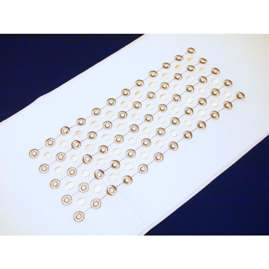 刺繍半衿「白色の地に薄紫色と薄ベージュ色の幾何学模様の刺繍」