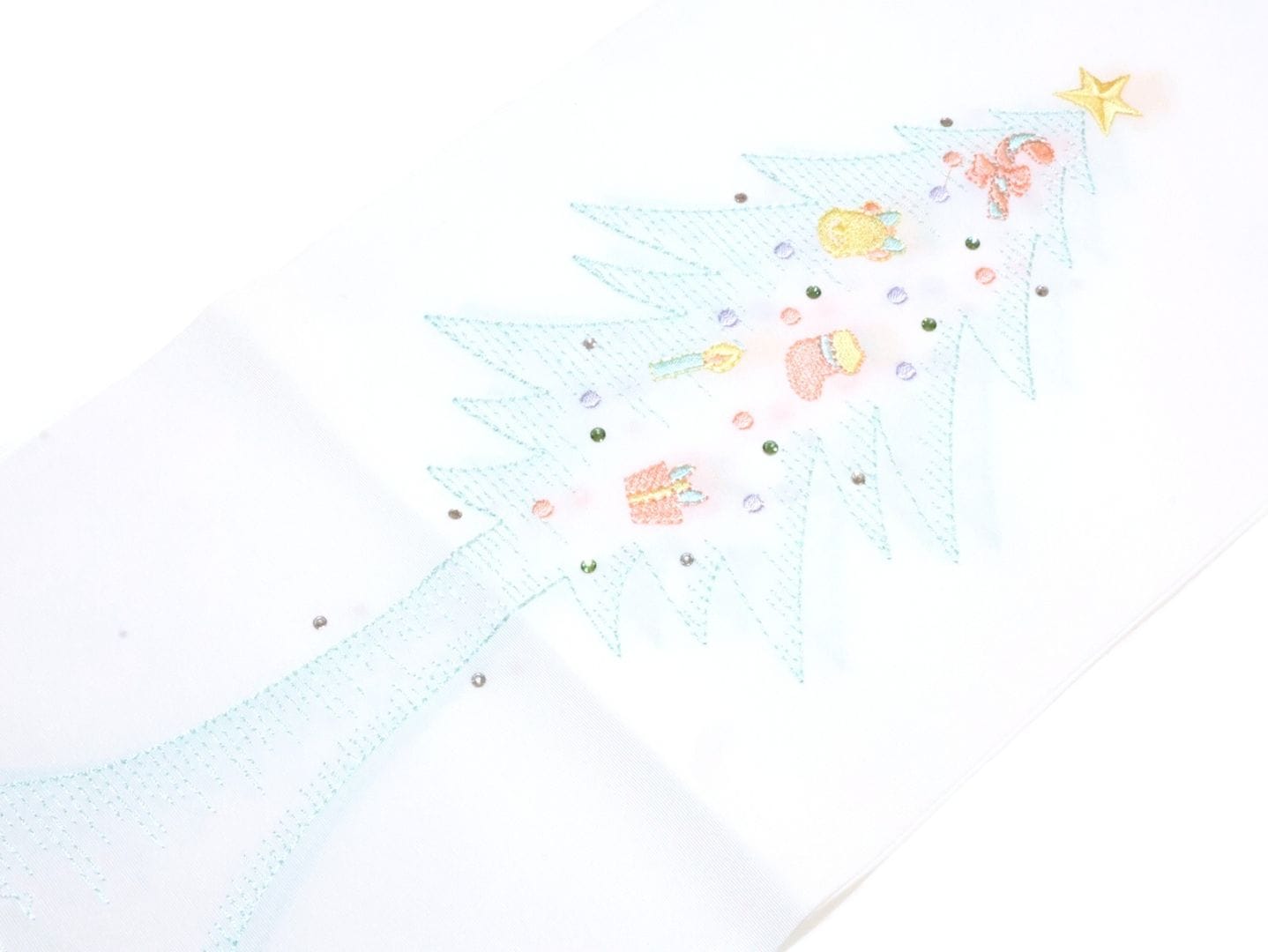 ・刺繍半衿「白色の地に薄青緑色のクリスマスツリー(ラインストーン付)」