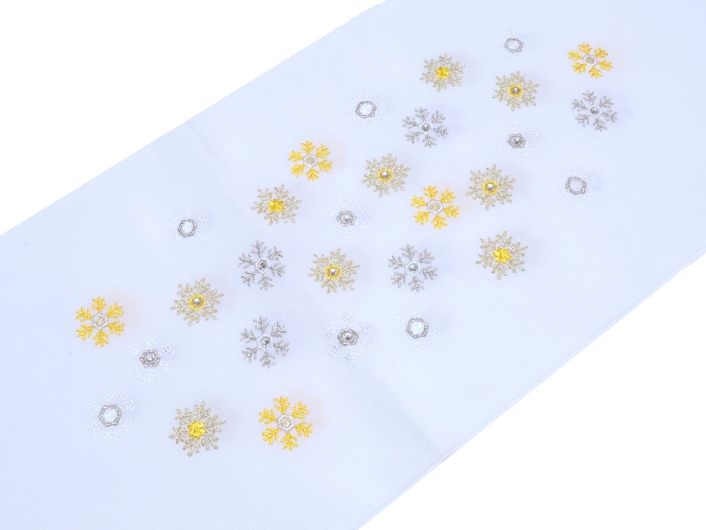・刺繍半衿「白色の地に黄色の雪の結晶の刺繍とラインストーン」
