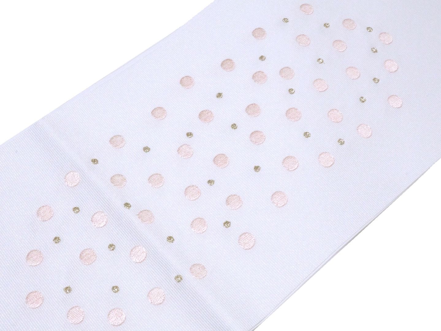 ・刺繍半衿「白色の地にピンク色のグラデーションの麻の葉模様」