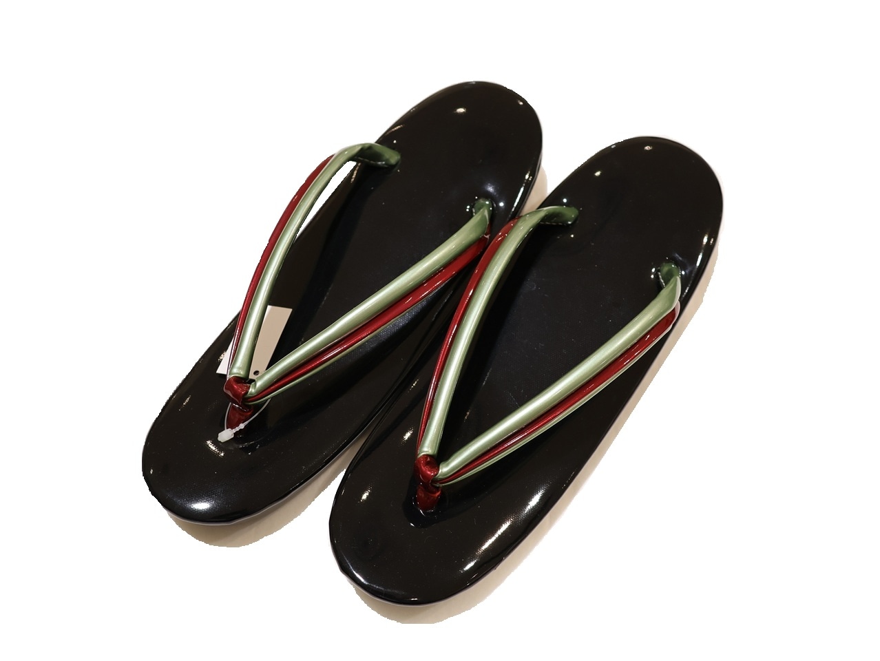 ウレタン草履「黒色の台に抹茶色鼻緒(エンジ色ライン)」Lサイズ」」」」」」」」