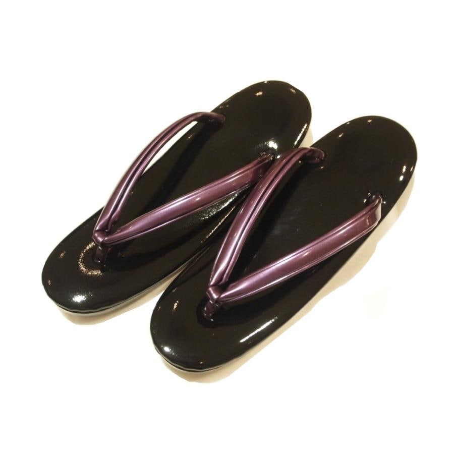 柄鼻緒ウレタン草履「黒色の台(ドット模様)にエンジ色ぼかしの鼻緒」Mサイズ