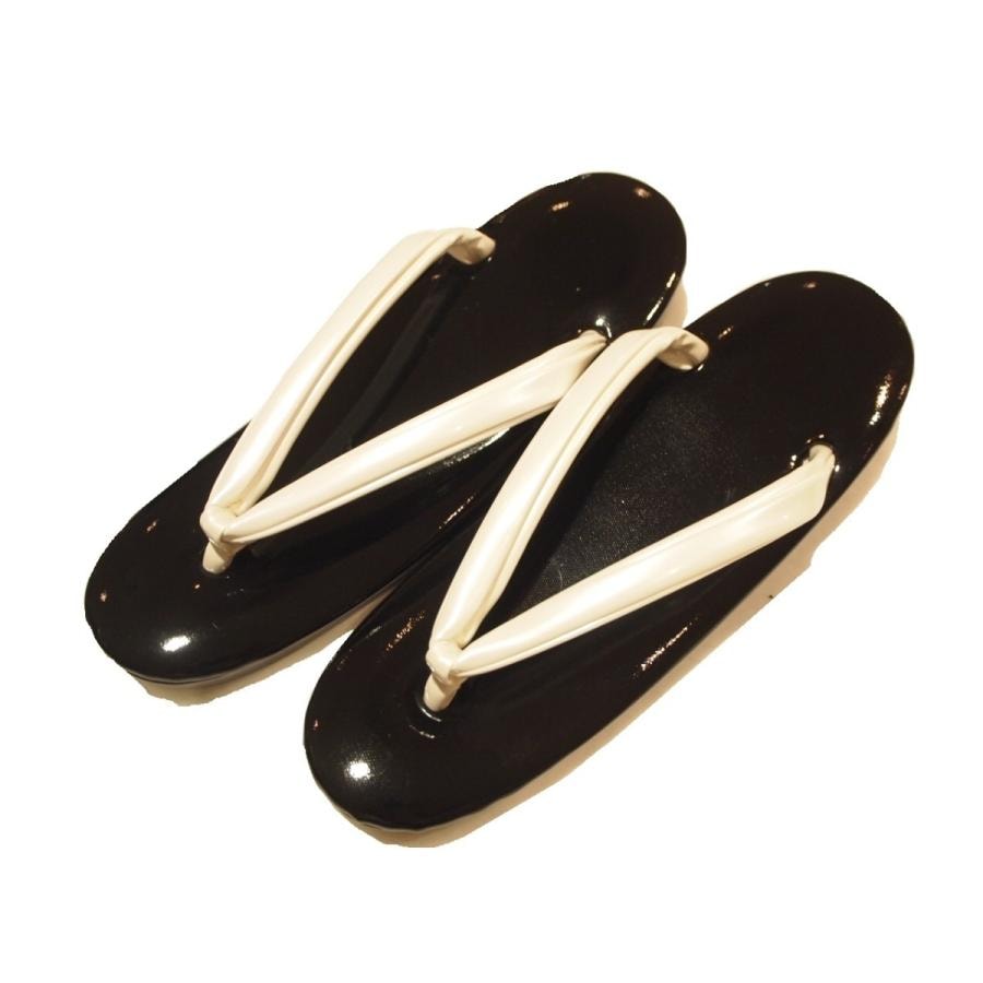 ウレタン草履「黒色の台にクリーム鼻緒(エンジ色ライン)」Mサイズ