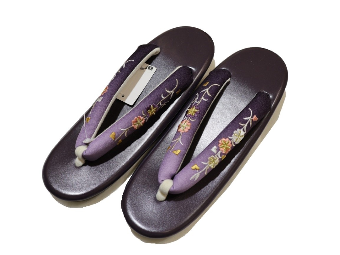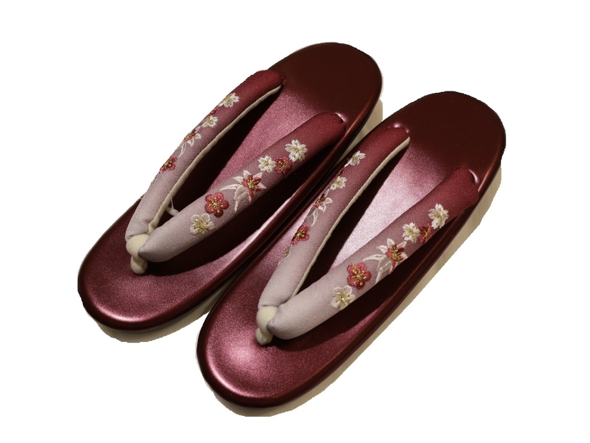 刺繍鼻緒ウレタン草履「ワイン色の台にワイン色ぼかしの刺繍鼻緒」
