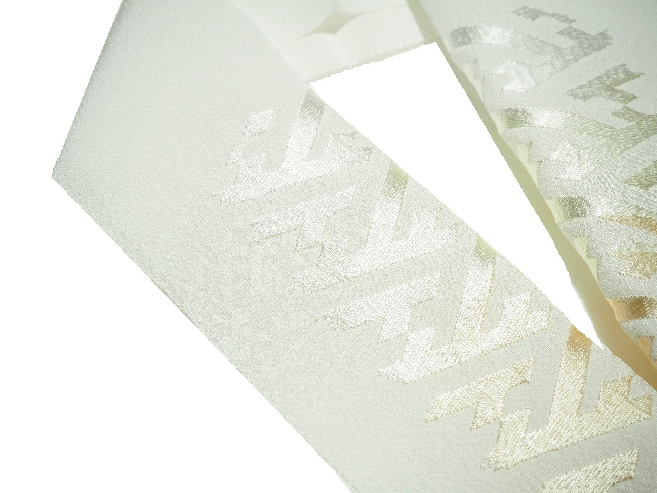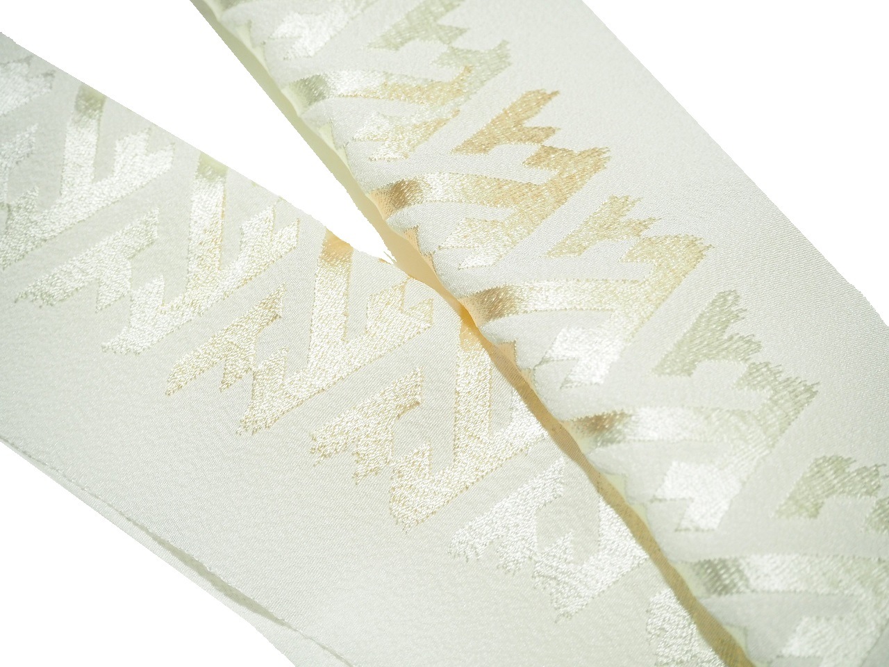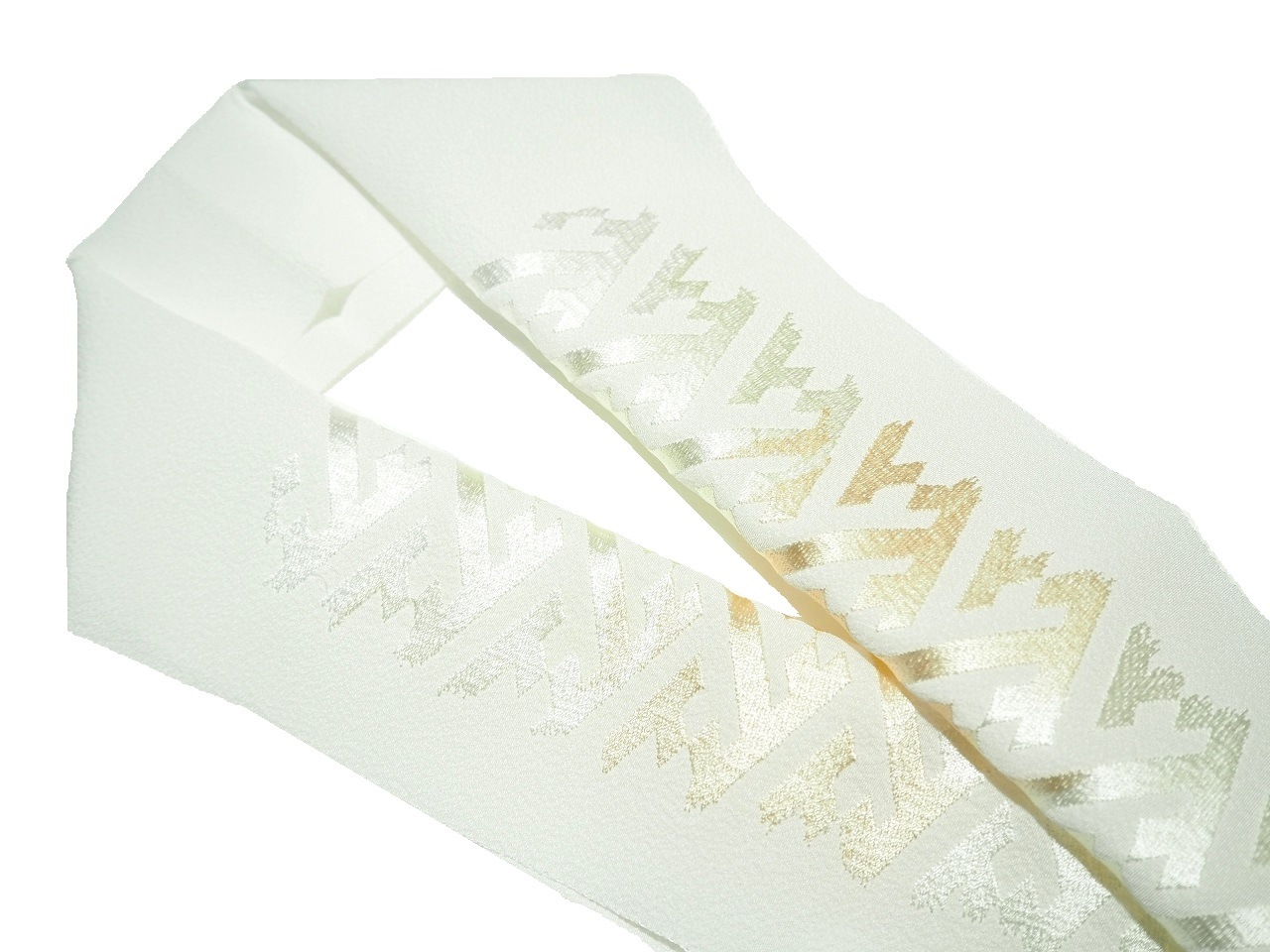 正絹刺繍半衿「白色の地に薄ベージュ色ぼかしのサヤ型の刺繍」