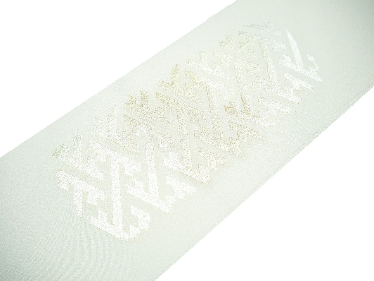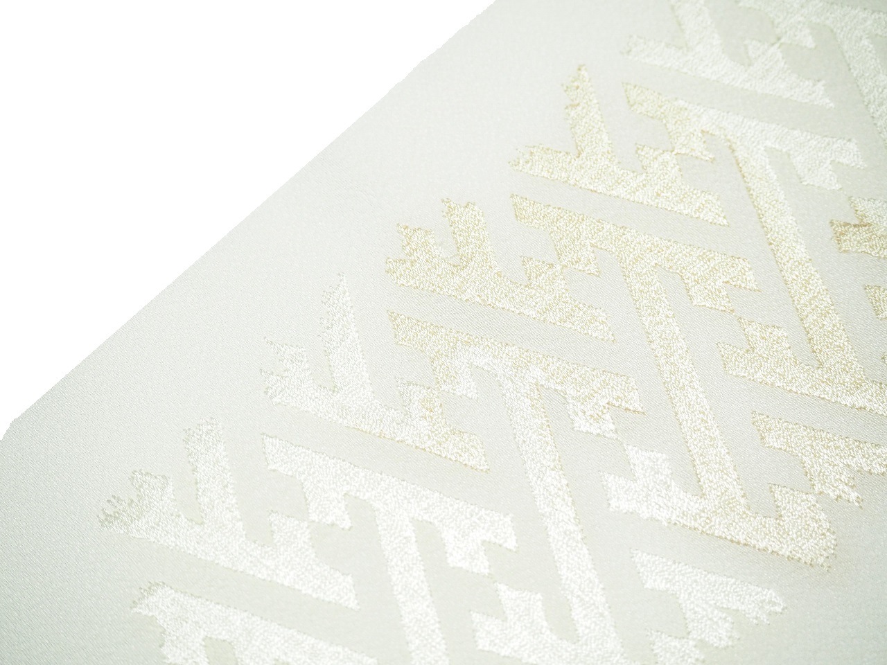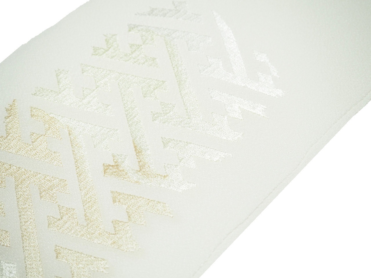 正絹博多織半幅帯「グレー色の地に麻の葉模様と金茶色の矢羽根風模様」