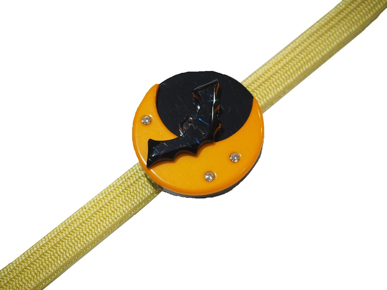 ラクト帯留め「オレンジ色の三日月と黒色のコウモリ」