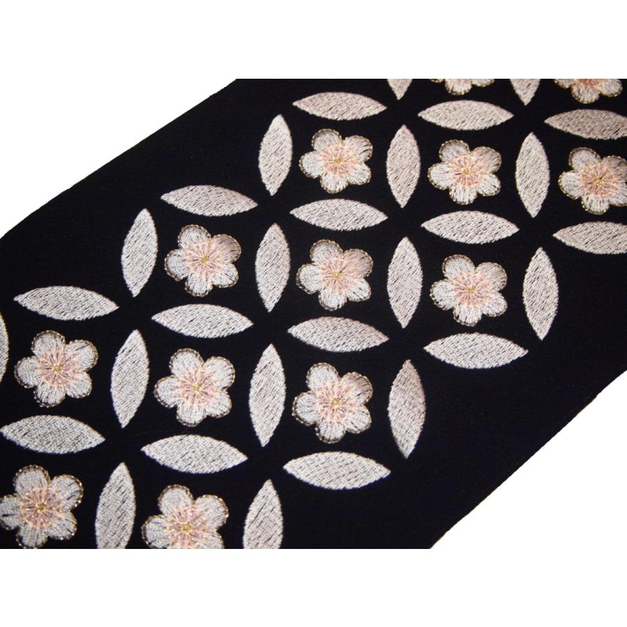 【長尺】刺繍半衿「黒色の地に銀色の七宝と梅の刺繍」