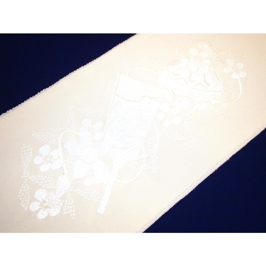 正絹刺繍半衿「生成り色の地に白色の毬と羽子板の刺繍」
