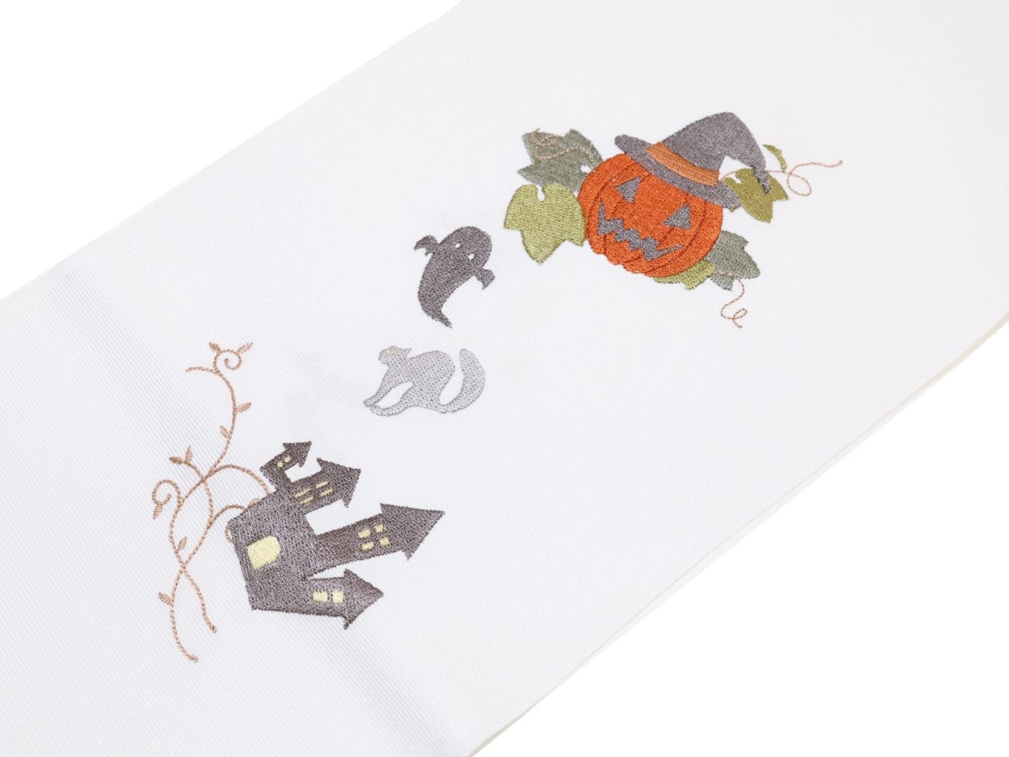 ・刺繍半衿「白色の地にハロウィンと魔女の刺繍」