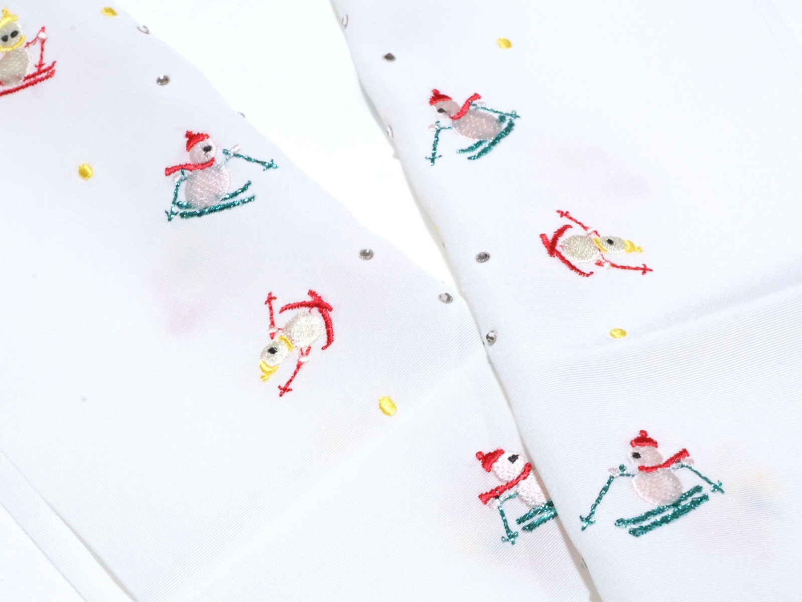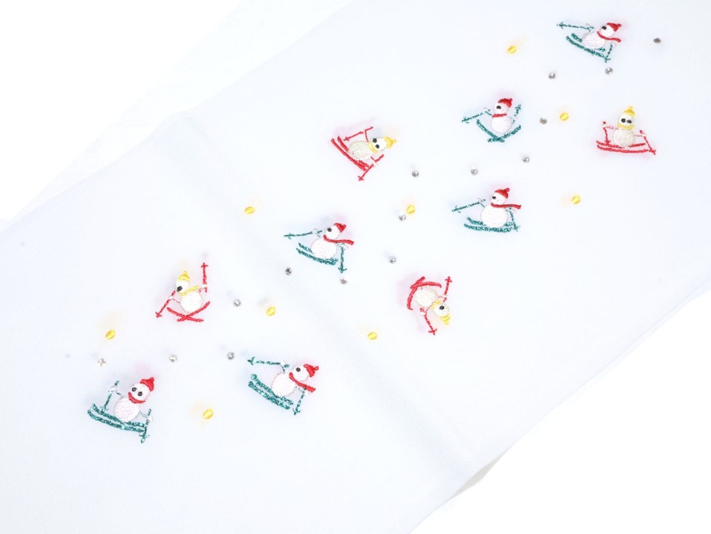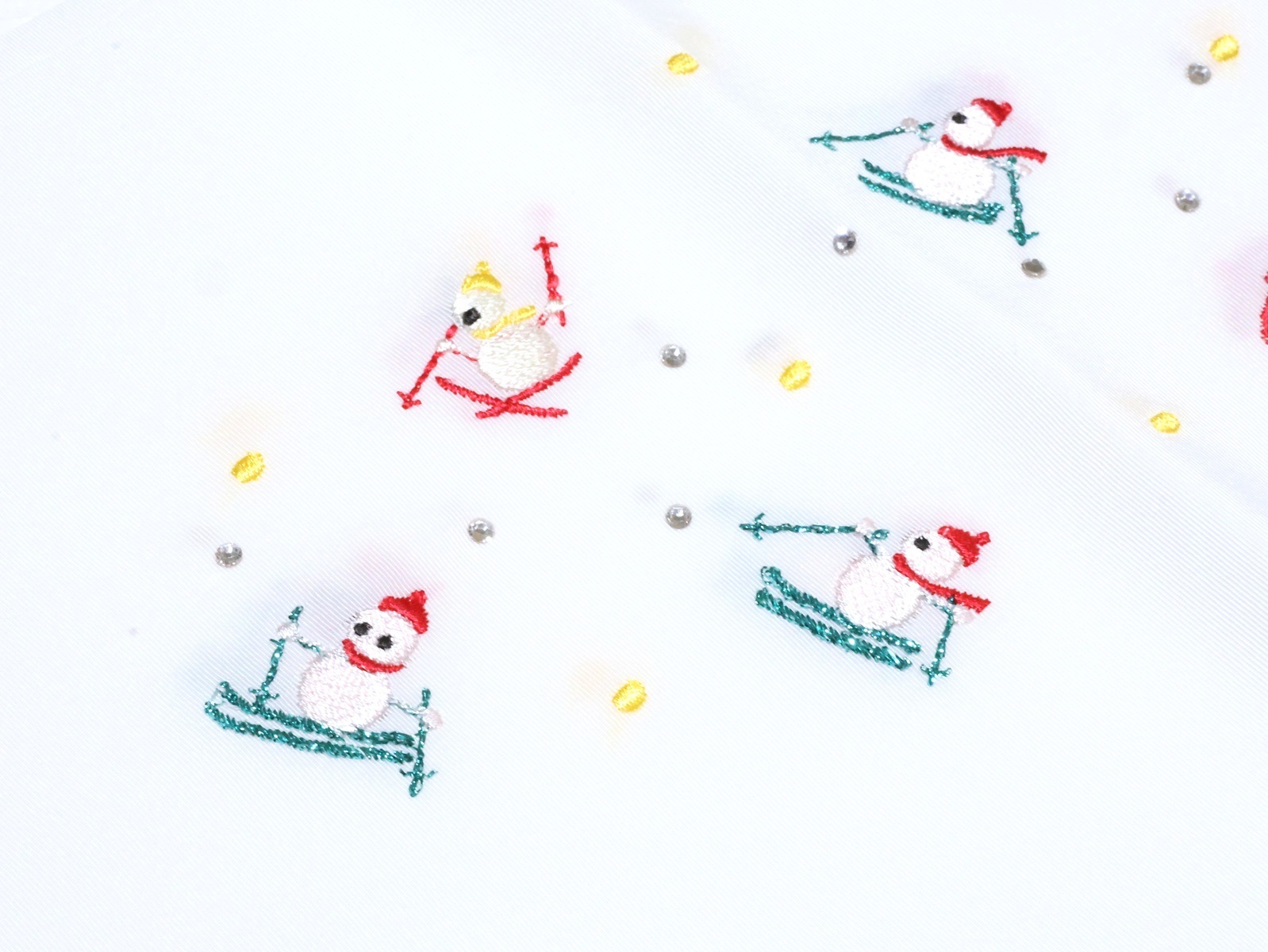 ・刺繍半衿「白色の地に雪だるまの刺繍とラインストーン」