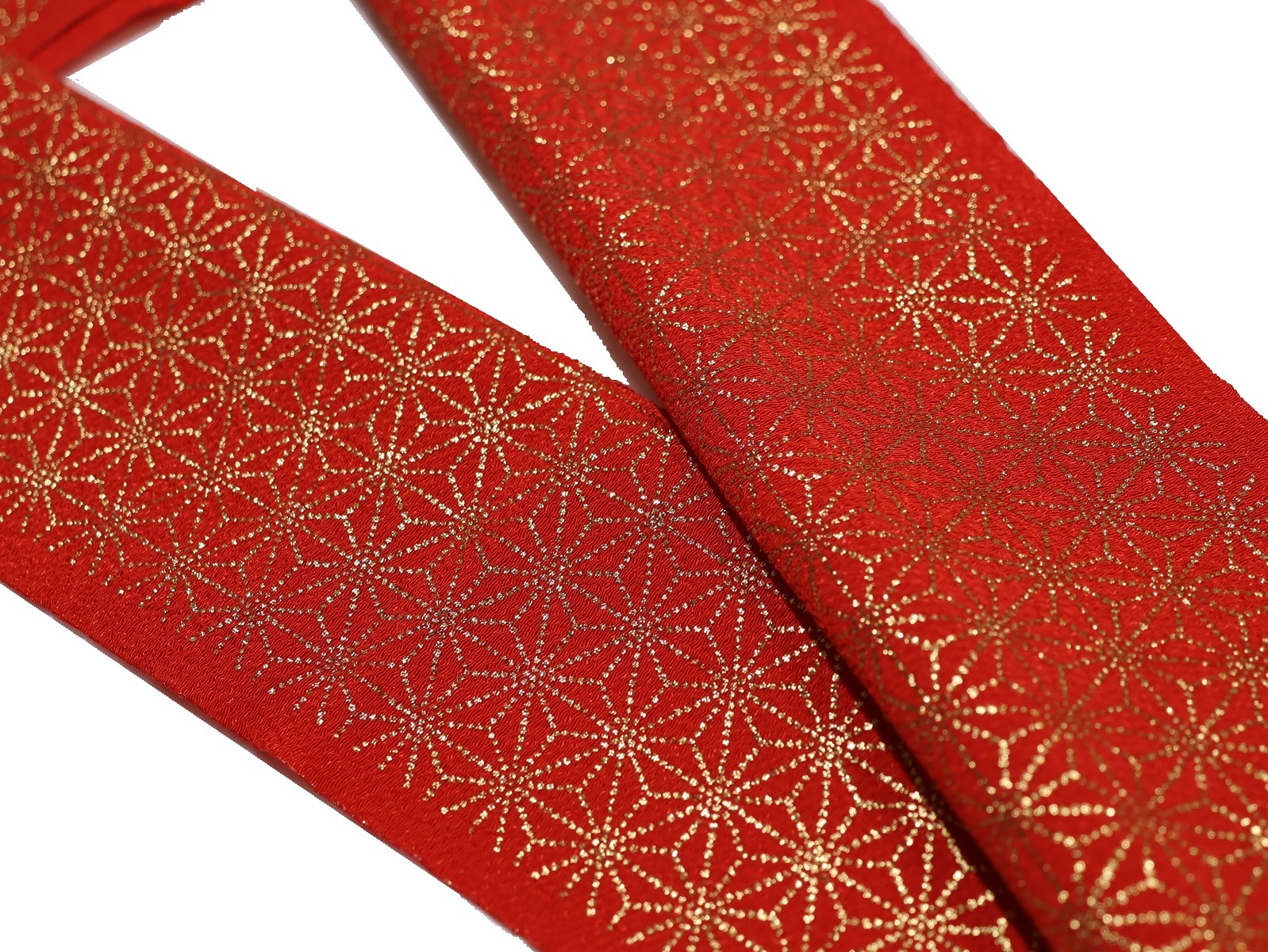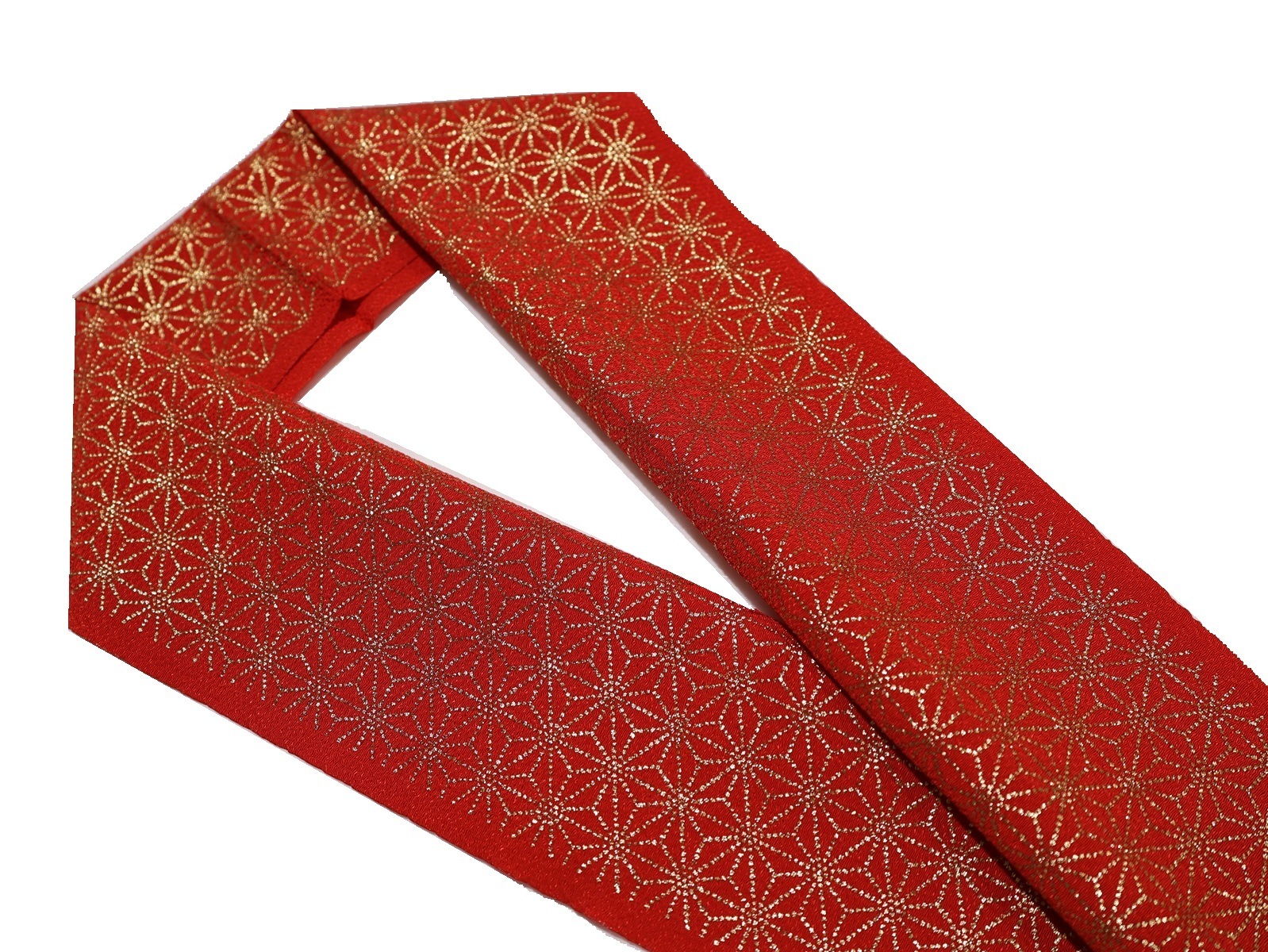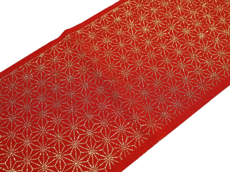 洗える柄物半衿「赤色の地に金色の麻の葉模様」