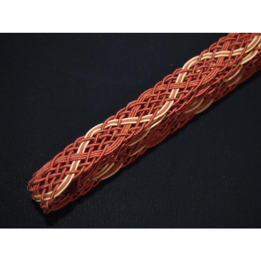 ・夏物正絹帯締め「蘇芳色の地に白色ライン」