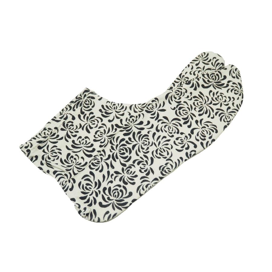 「コハゼなし」男物ストレッチ足袋「灰白色の地に黒色の乱菊模様」