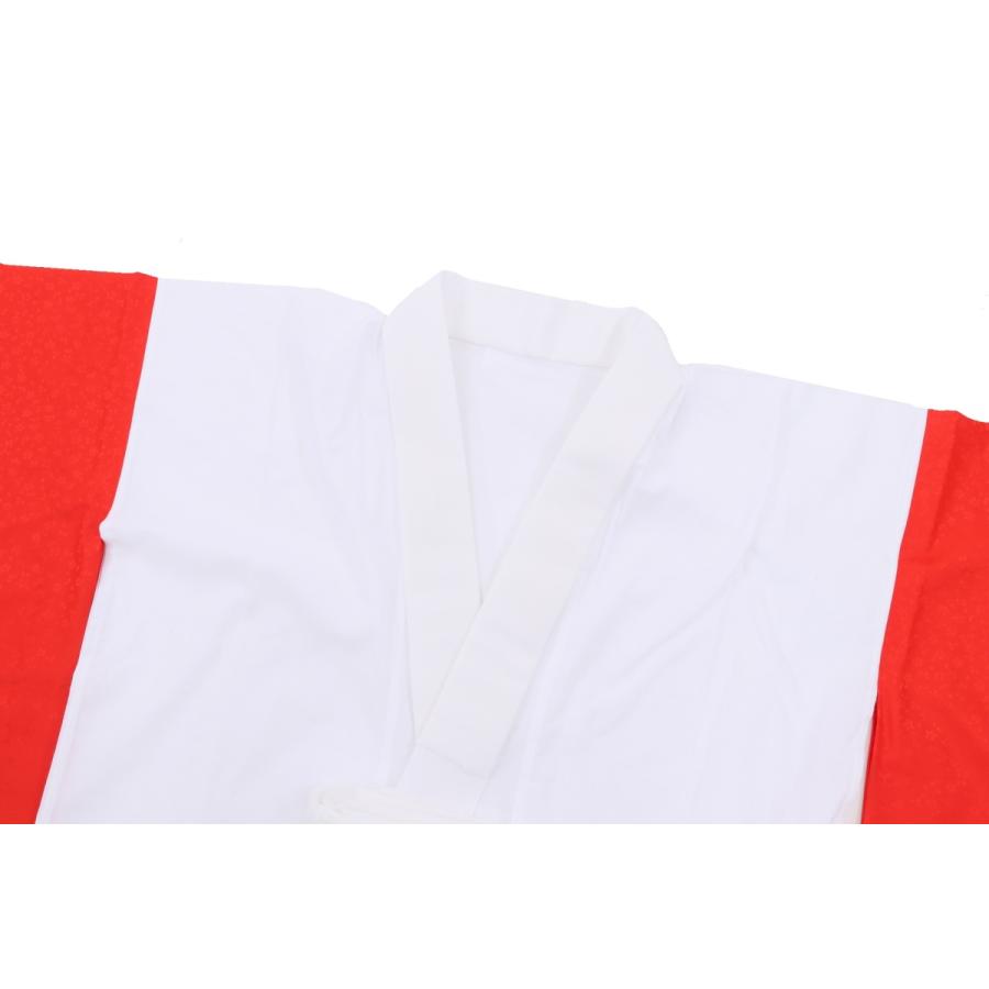 ポリエステルの袖及び、裾よけの赤色の部分には小桜の柄の地模様が入ります。