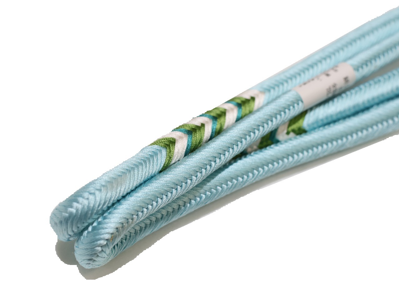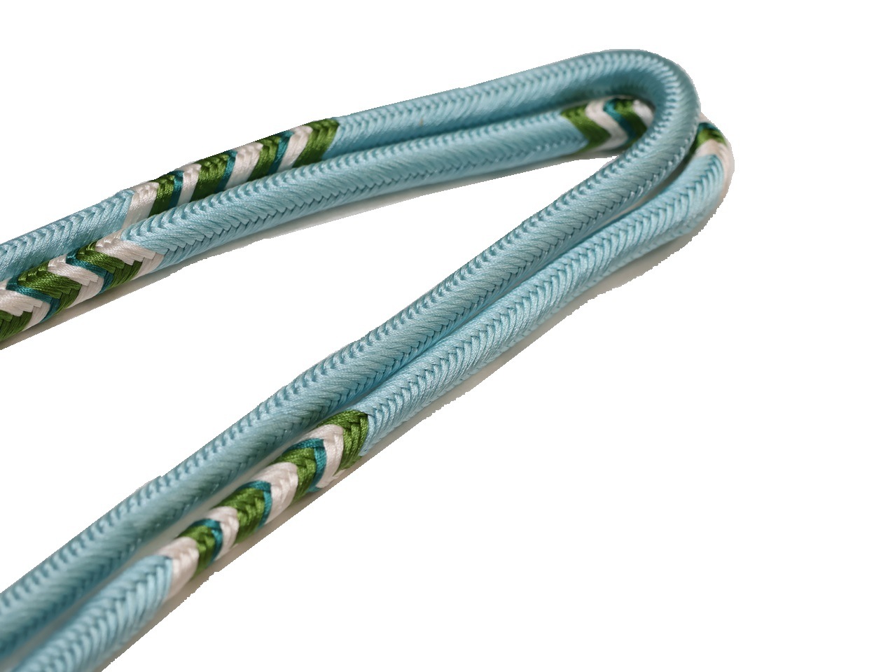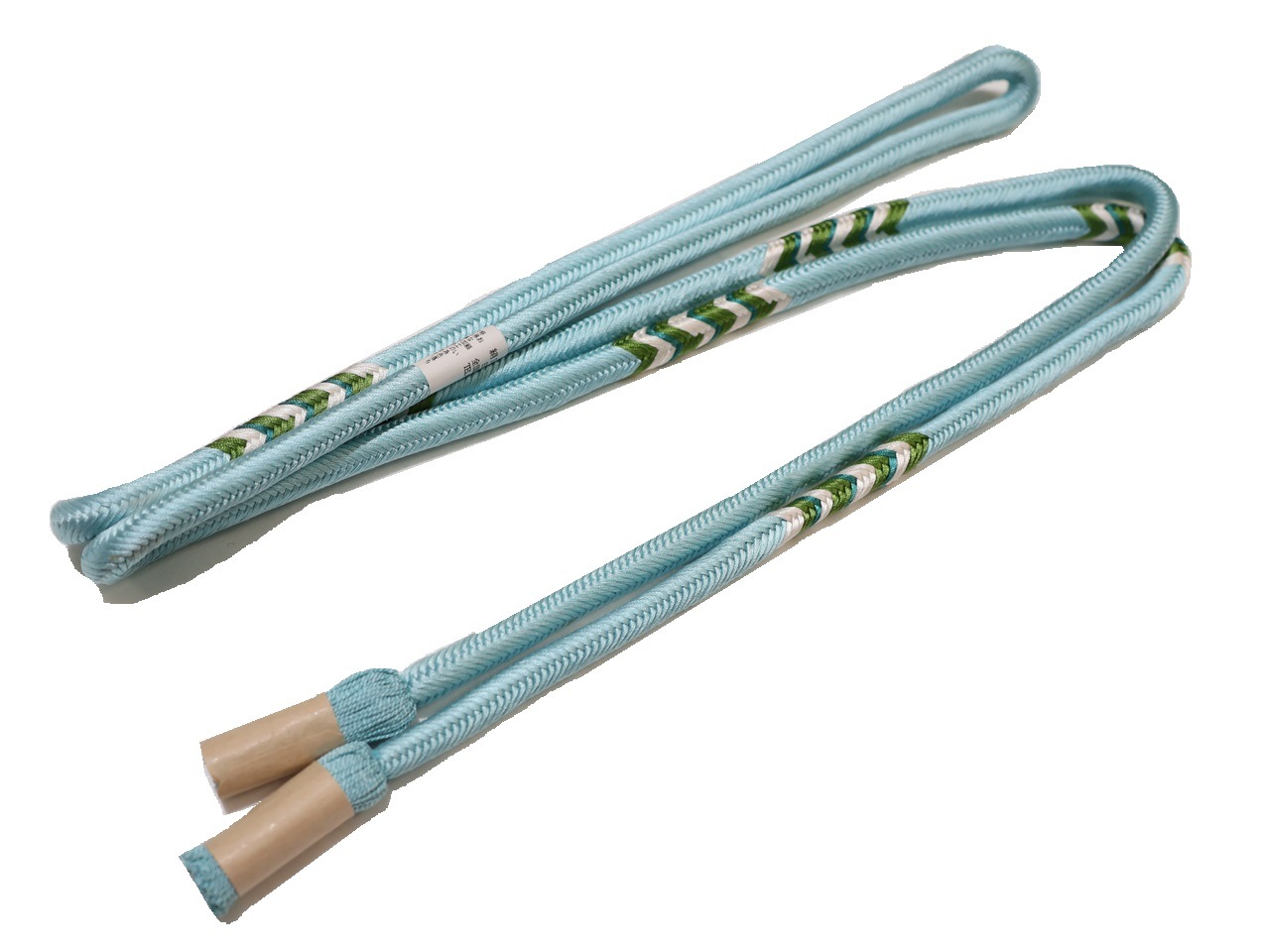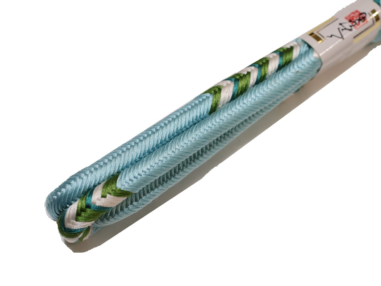正絹帯締め(丸組)「水色の地に白色と抹茶色の模様」