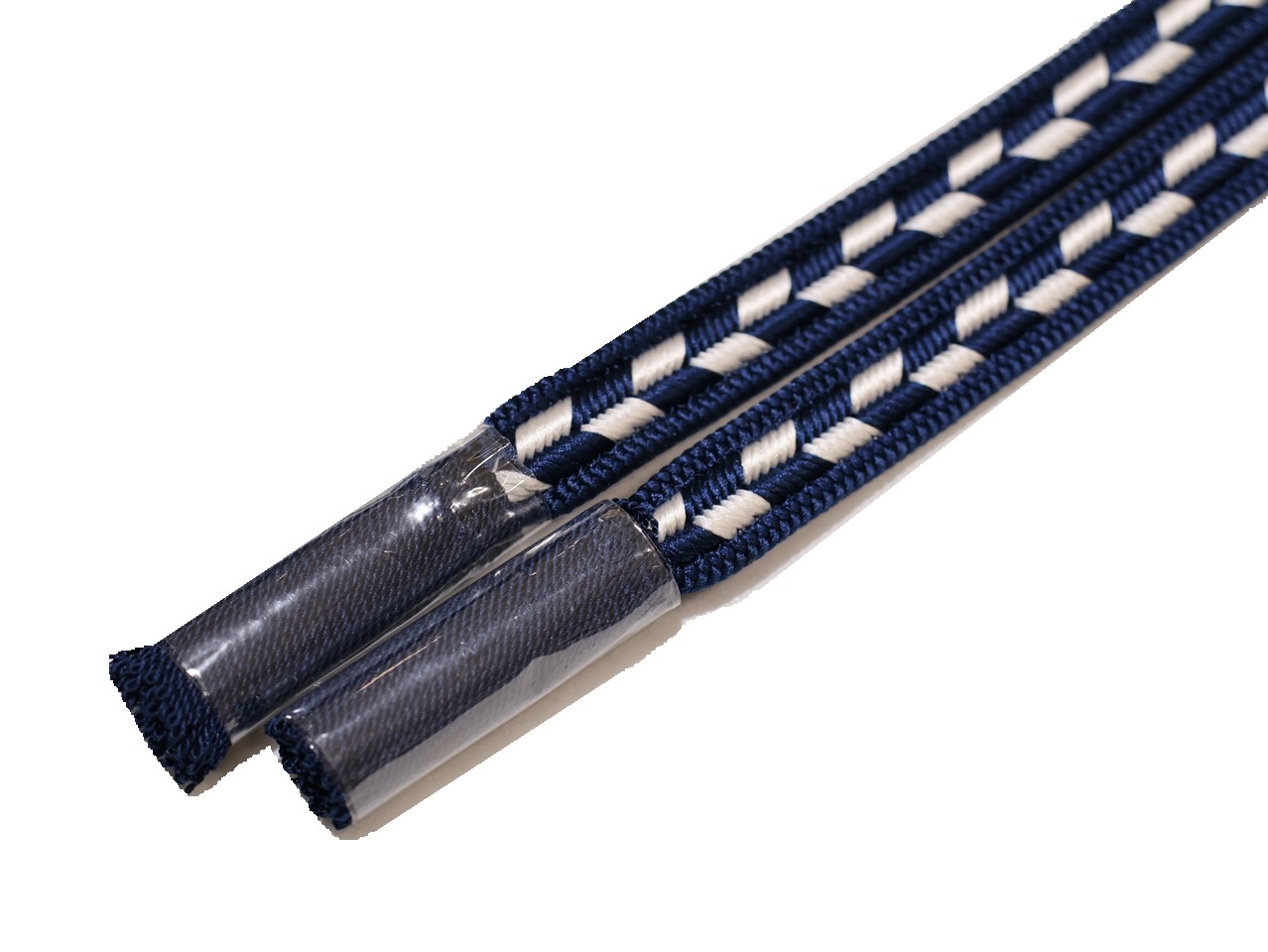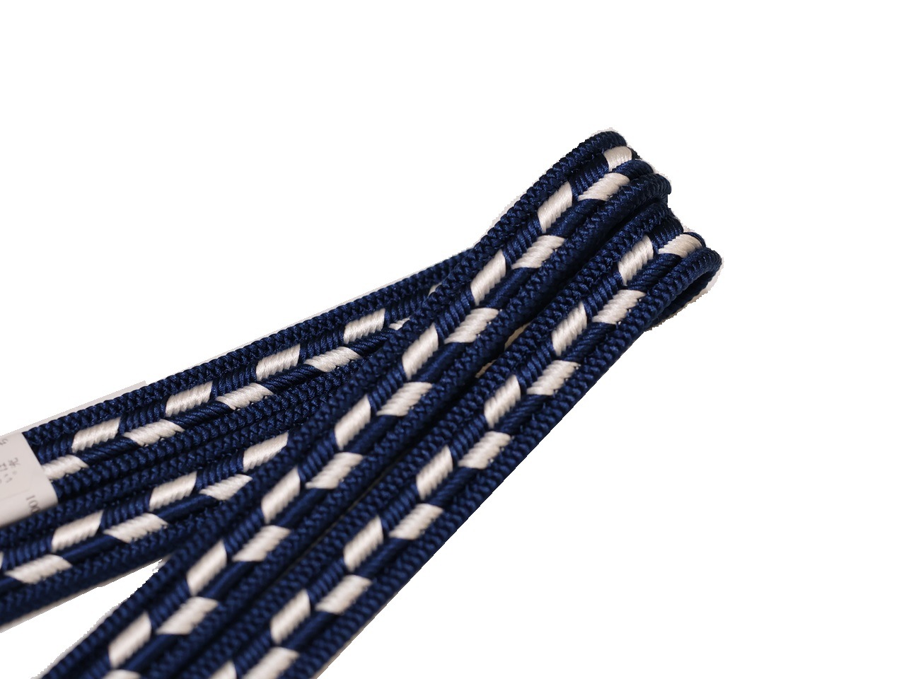 ・正絹帯締め(平組)「紺色の地に白色の矢羽根模様」
