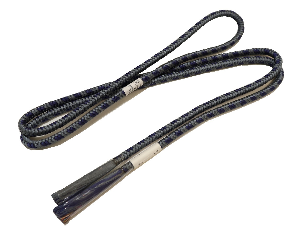 ・正絹帯締め(丸組)「濃いグレー色の地に紺色の模様」