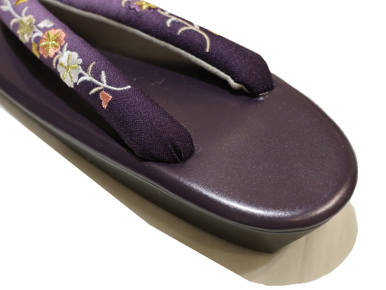 刺繍鼻緒ウレタン草履「深紫色の台に紫色ぼかしの刺繍鼻緒」