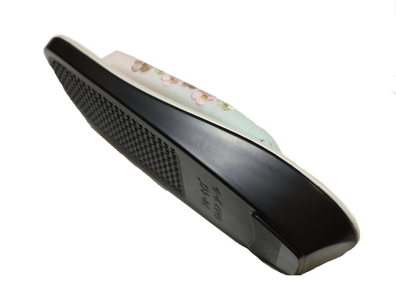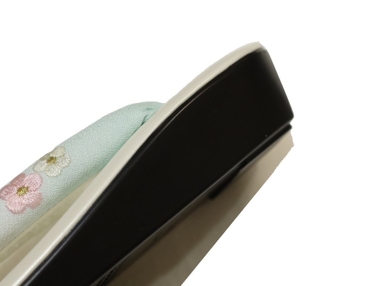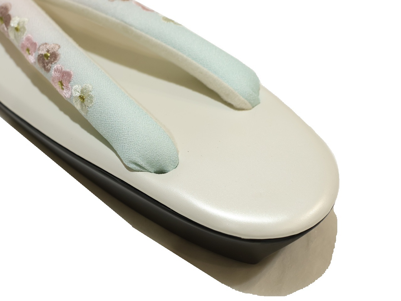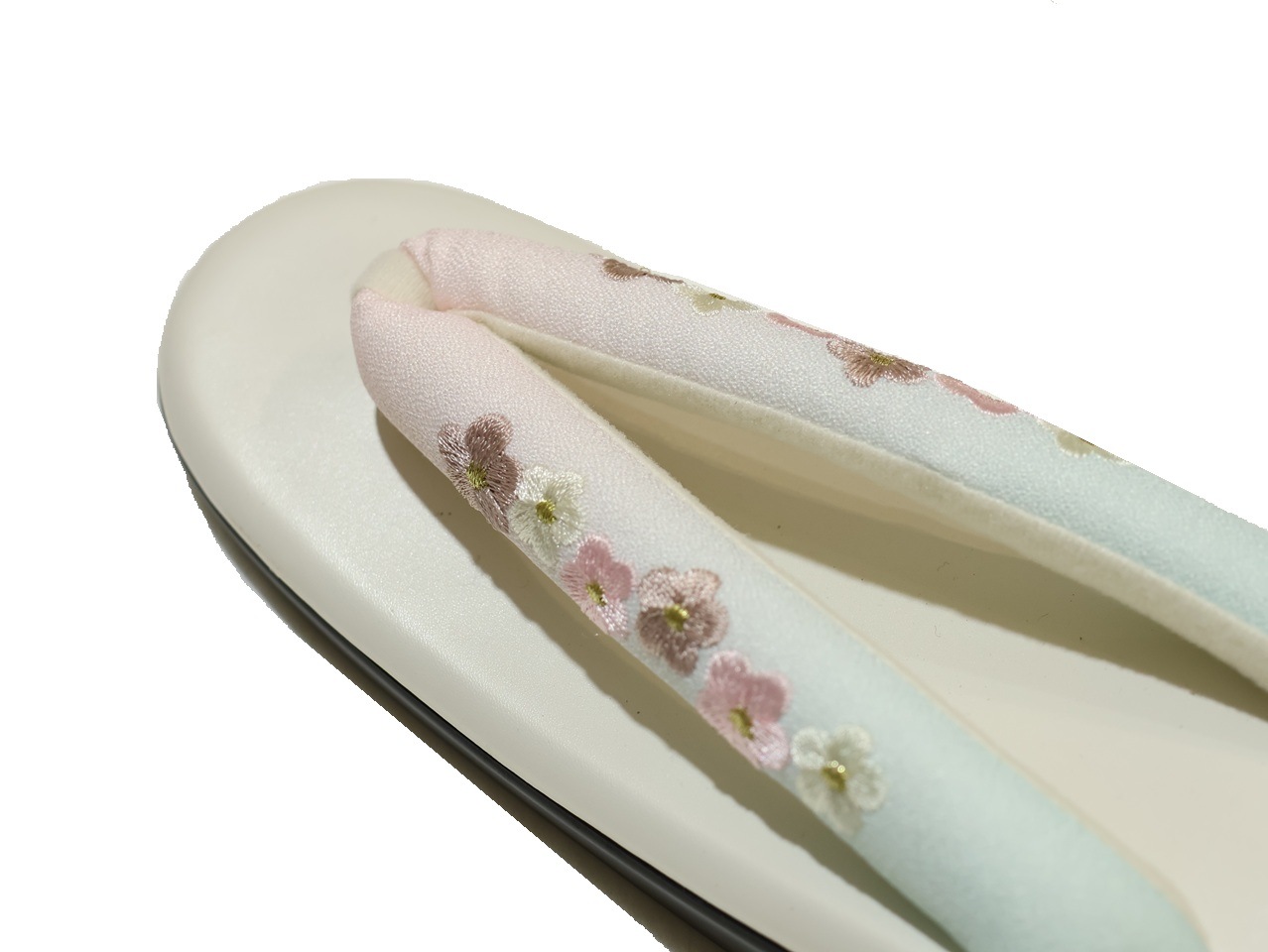 刺繍鼻緒ウレタン草履「白パール色の台に薄水色ぼかしの刺繍鼻緒」