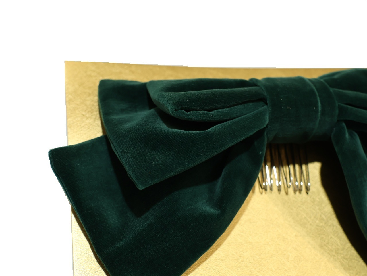 深緑色の別珍の生地を使用した上品なリボンになります。
