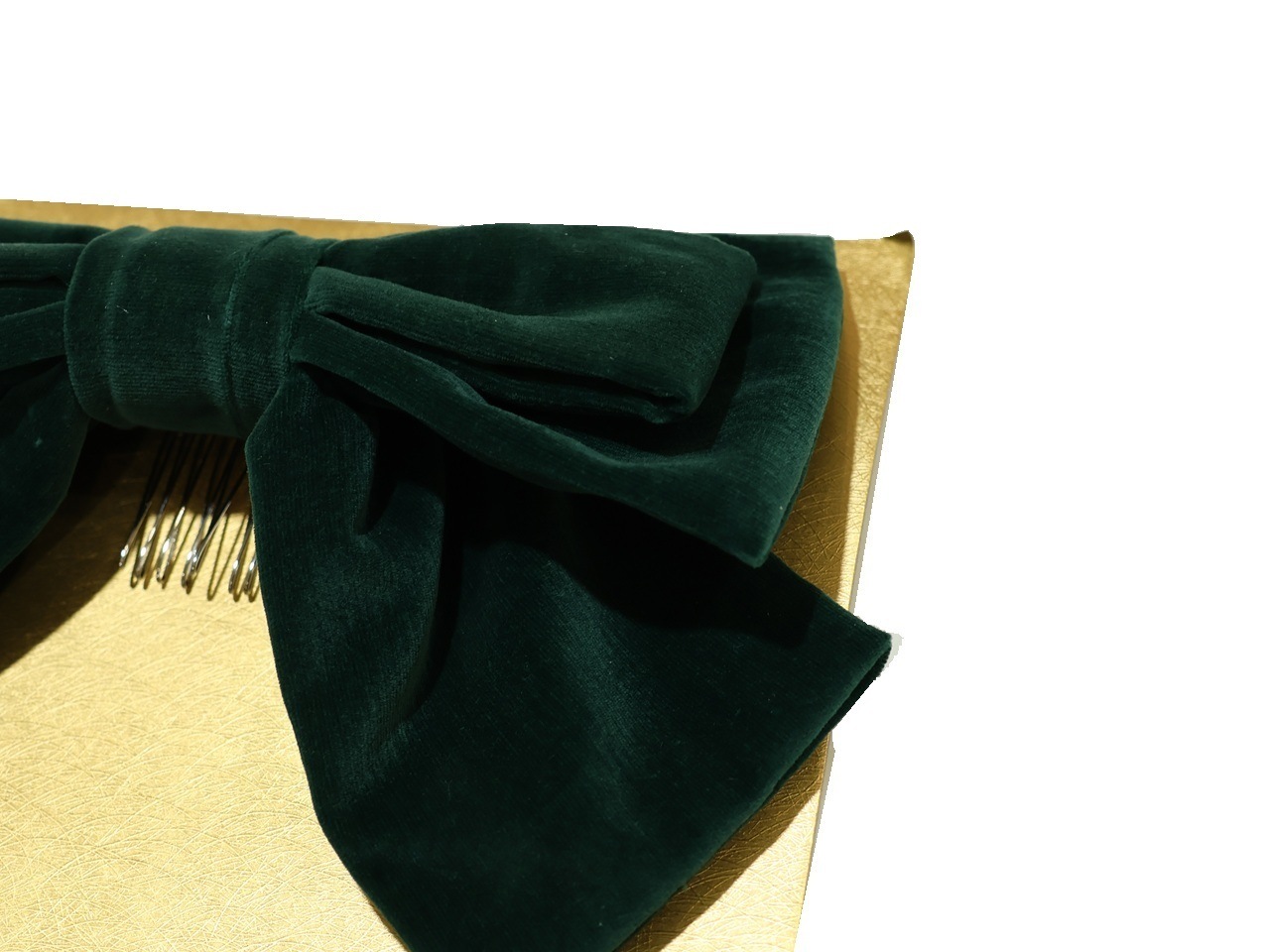 深緑色のリボンの髪飾りです。