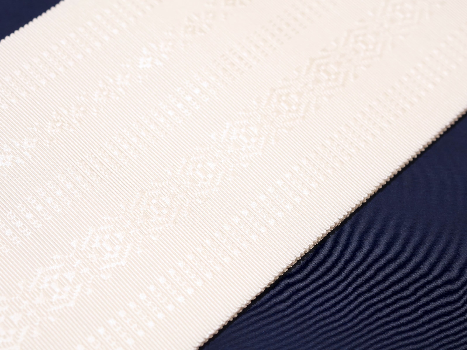 正絹博多織伊達締め「白色の地に博多献上模様」