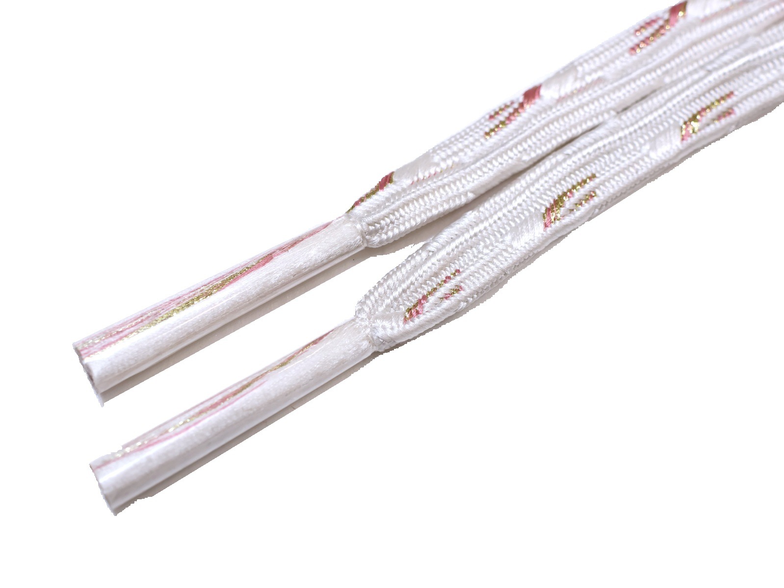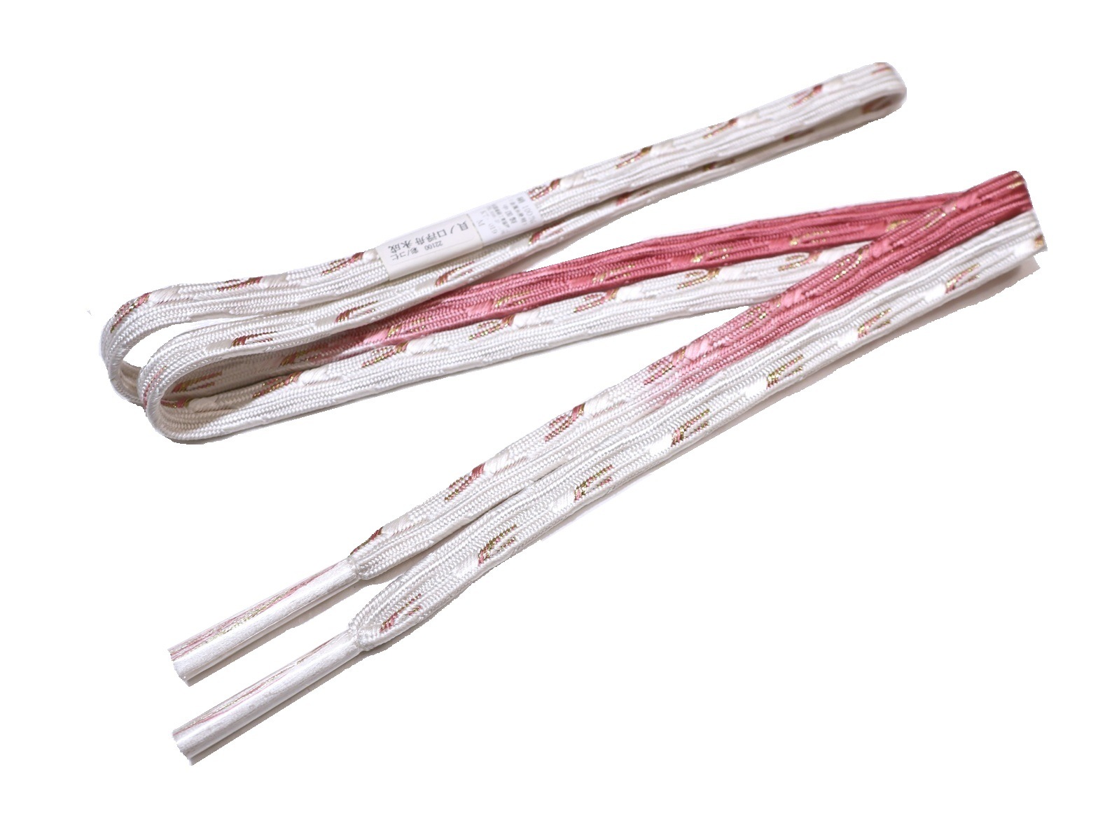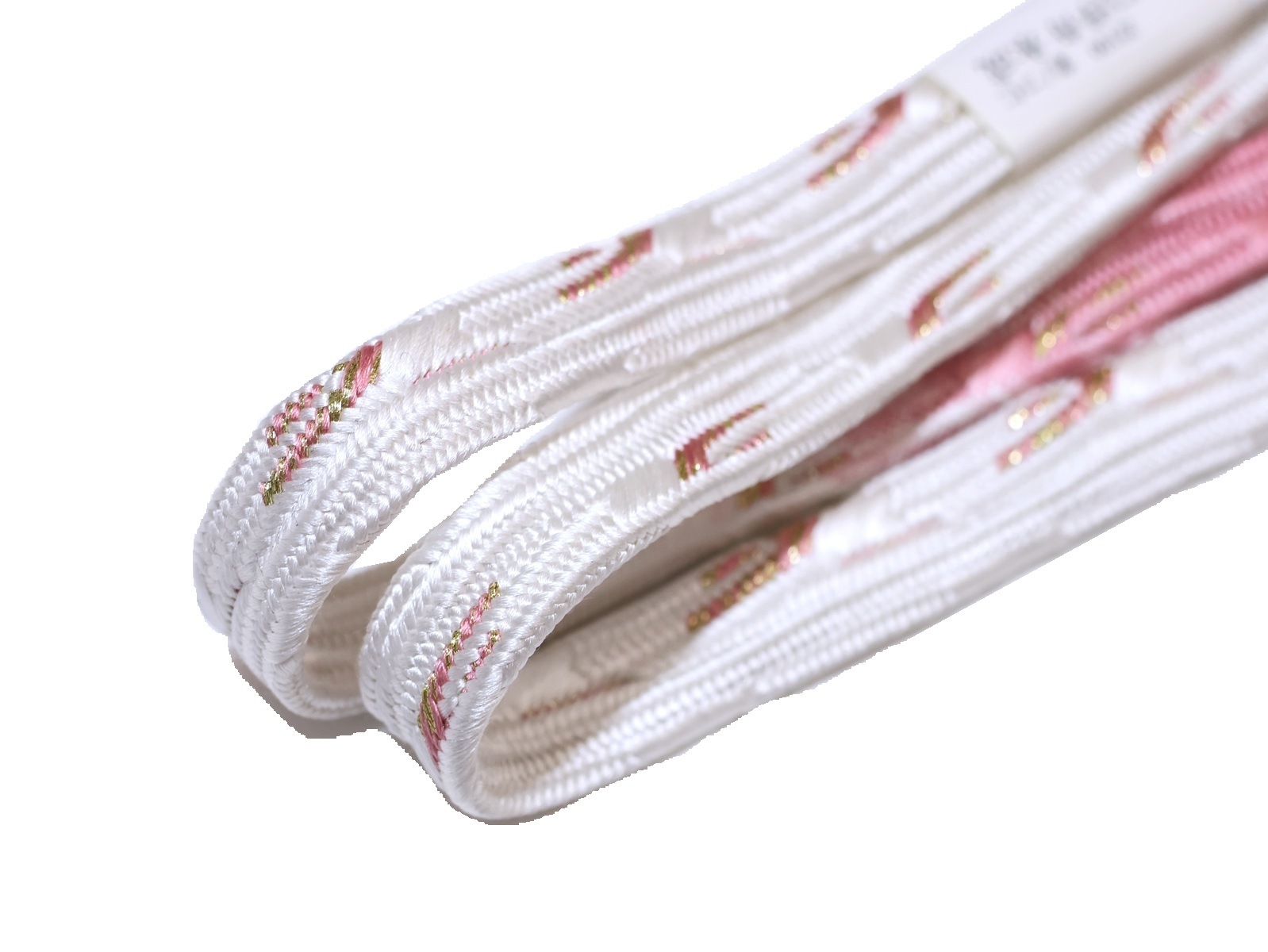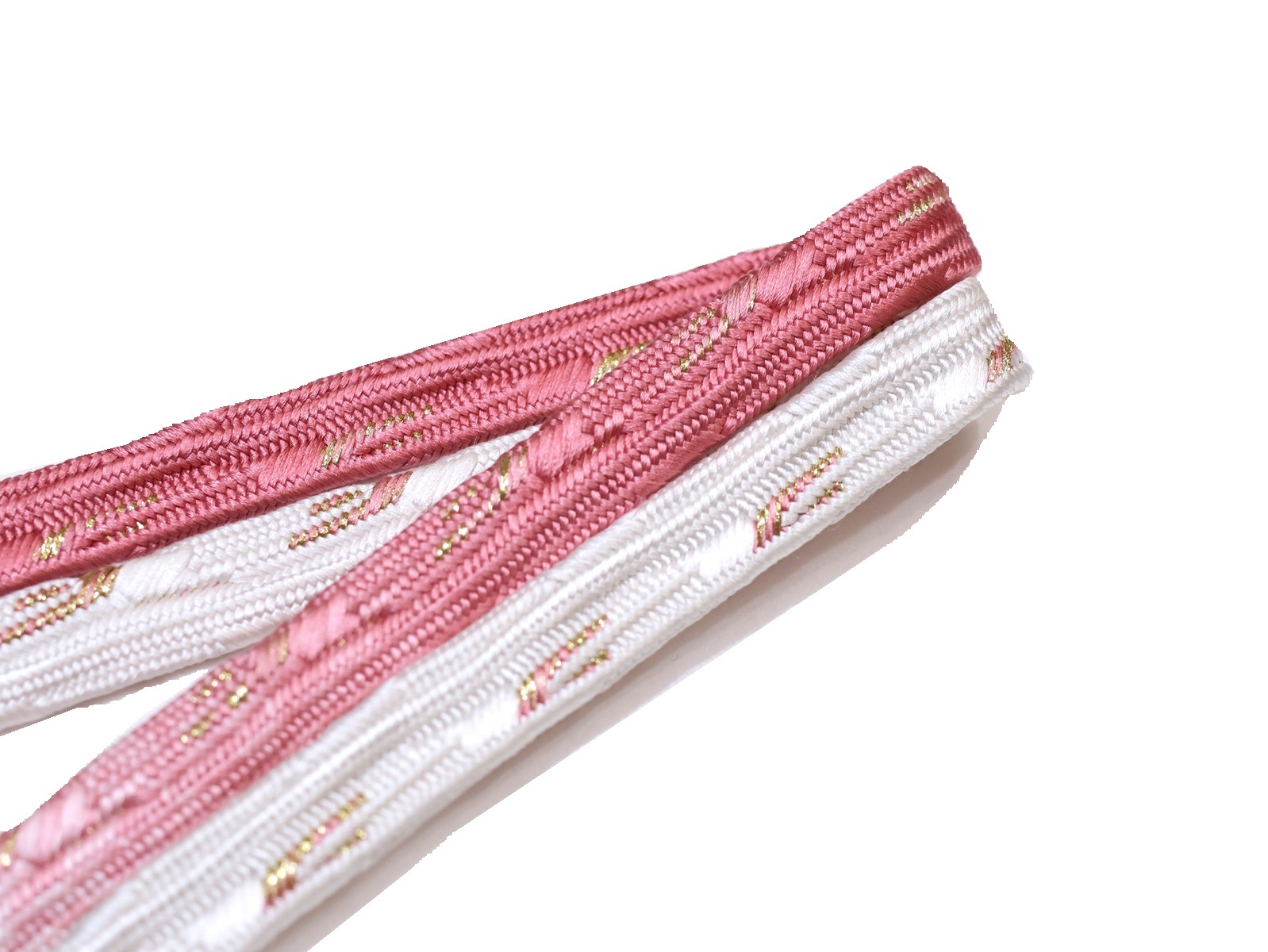 帯締めを結びますと中央の結び目より片側はローズピンク色、もう片側は白色になります。