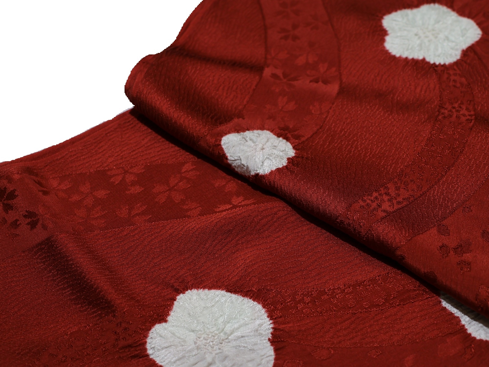 帯揚げ全体に桜とあられ模様の地模様が入ります。