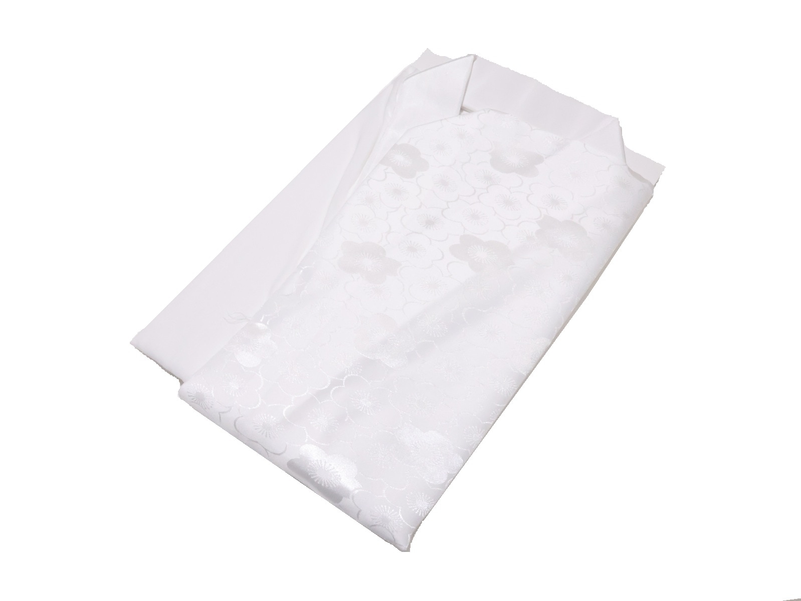 ポリエステル半襦袢「ベージュ色の地に白やピンク色の梅の模様」(Lサイズ)