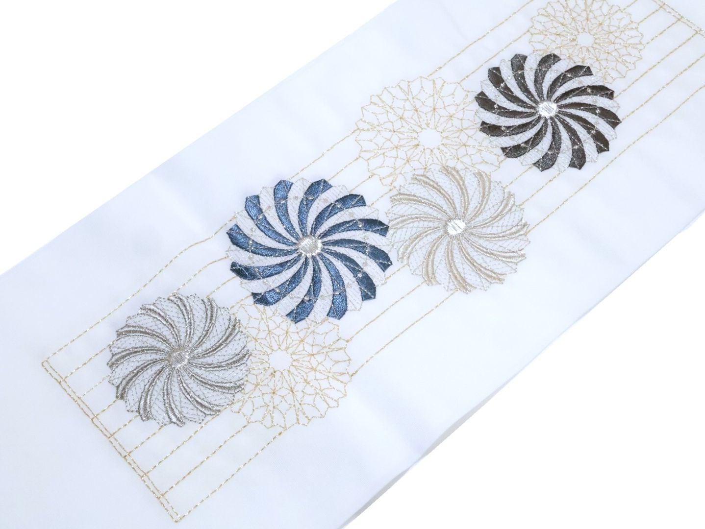 ・刺繍半衿「白色の地に白色と金色、ベージュ色、グレー色の若松の刺繍」