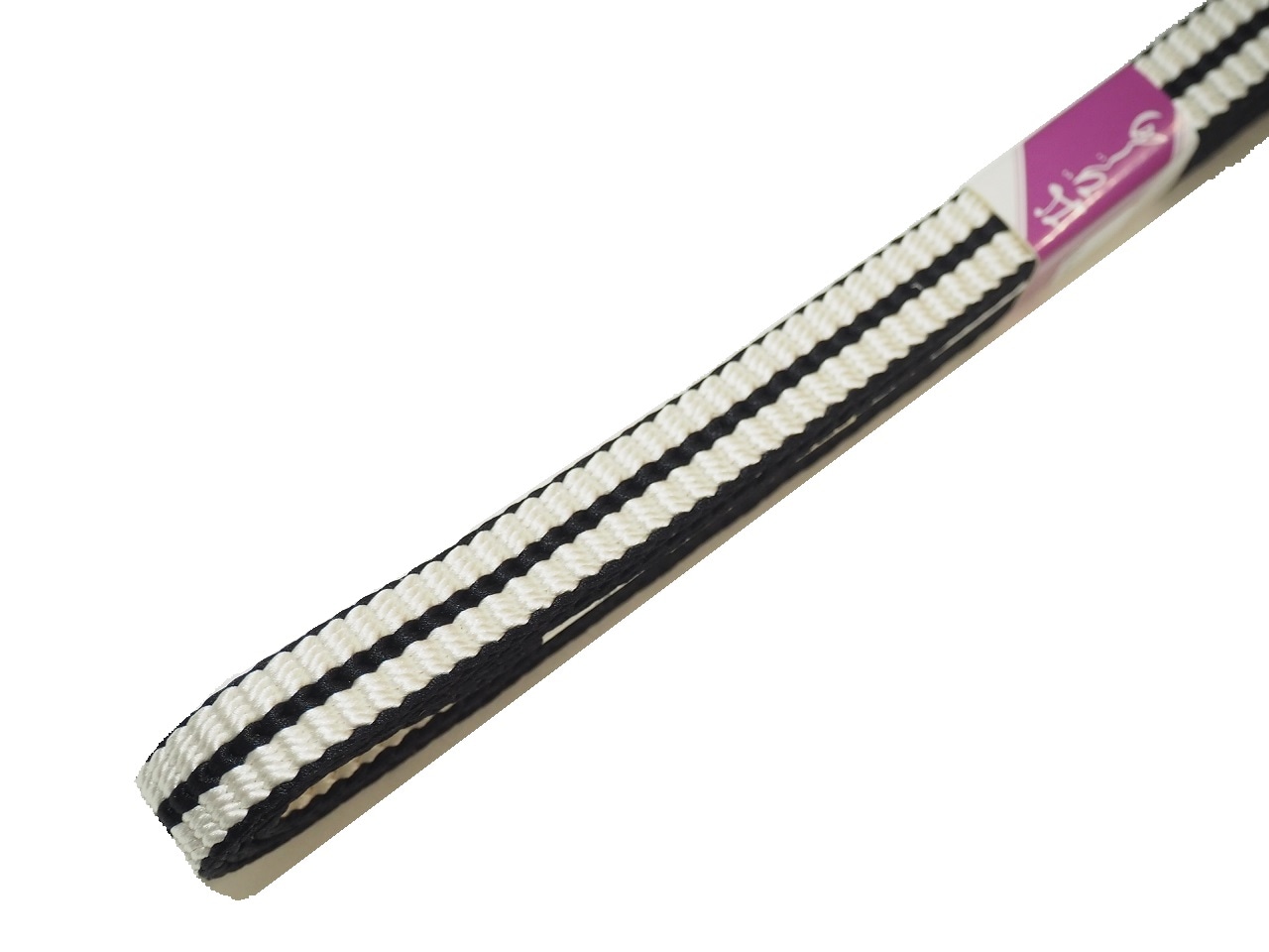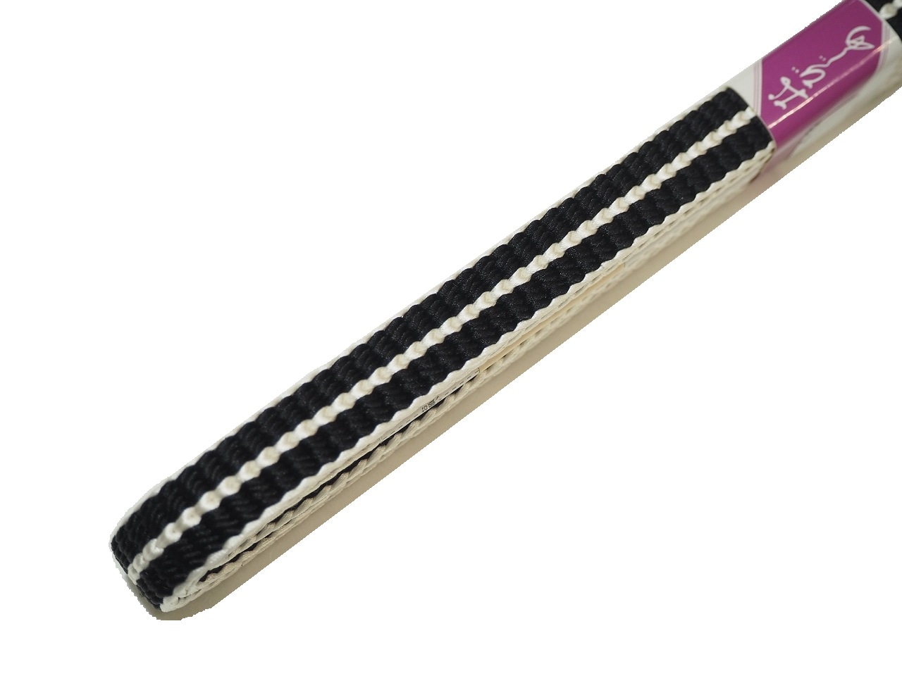 ・長尺正絹帯締め「ピンクベージュ色の地に片端に黒色とベージュ色ライン」