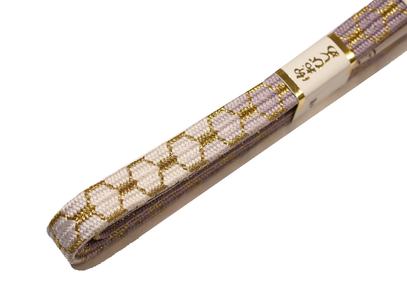 ・正絹帯締め「クリーム色の地に灰ローズ色ぼかし(金ラメ入り)」