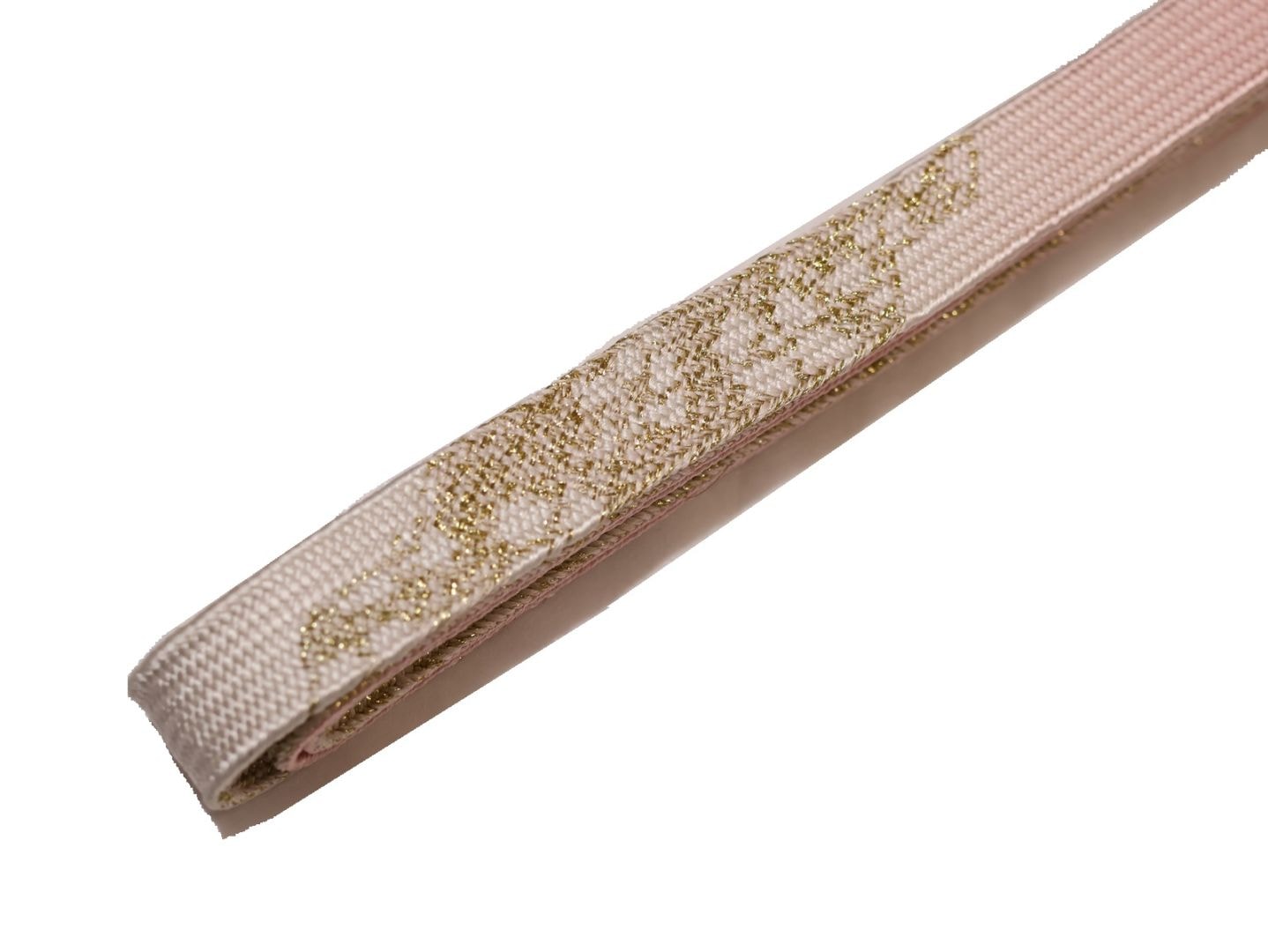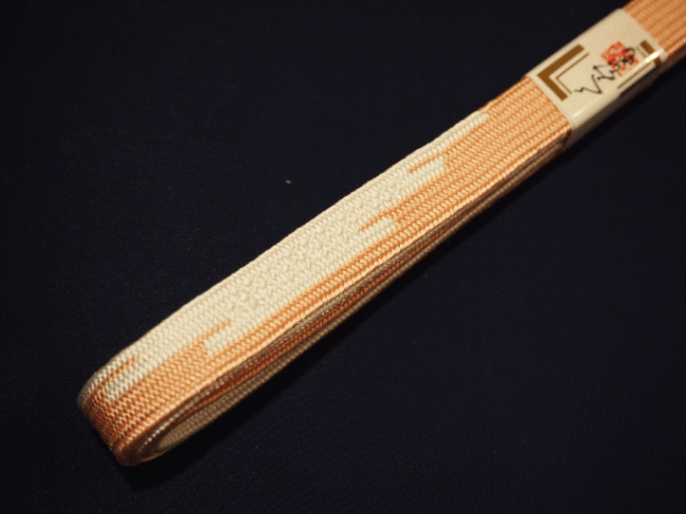 ・正絹帯締め(高麗組)「ピンクベージュ色の地に黒色の雪輪模様」