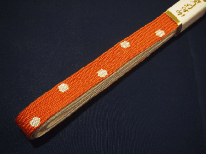 ・正絹帯締め(平組)「オレンジ色の地に白の花と2本のライン」