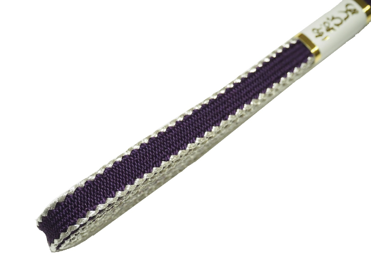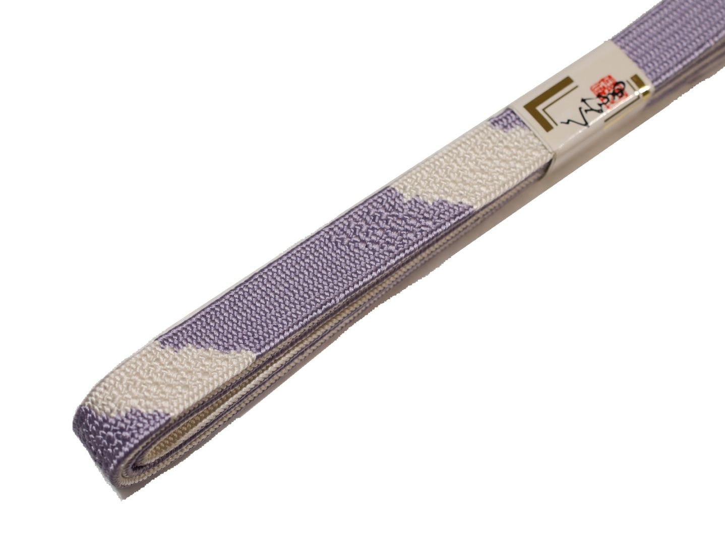・長尺正絹帯締め(平組)「薄フジ色の地に灰白色の斜めライン」
