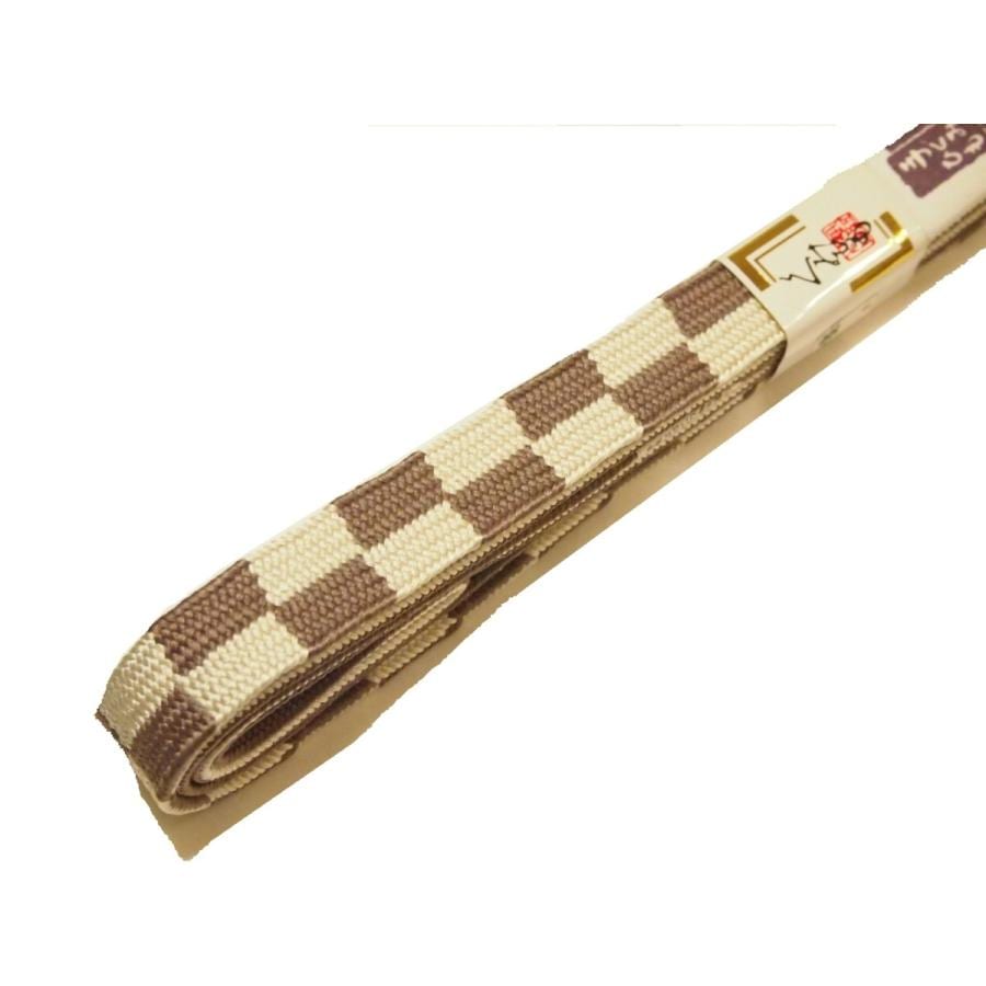 ・正絹帯締め(平組)「ピンクベージュ色の地にこげ茶色の市松模様」