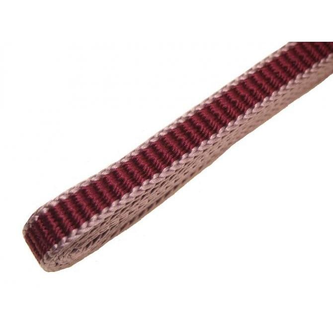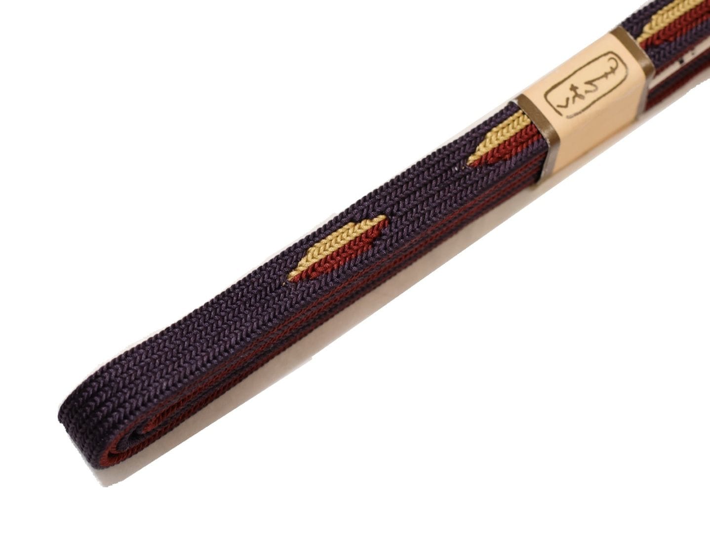 ・長尺正絹帯締め(平組)「エンジ色に紺色のライン(灰白色の縁取り)」