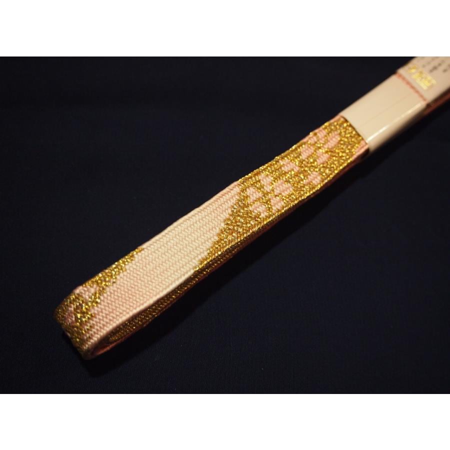 ・正絹帯締め(高麗組)「くちなし色の地に金糸のサイコロ模様」