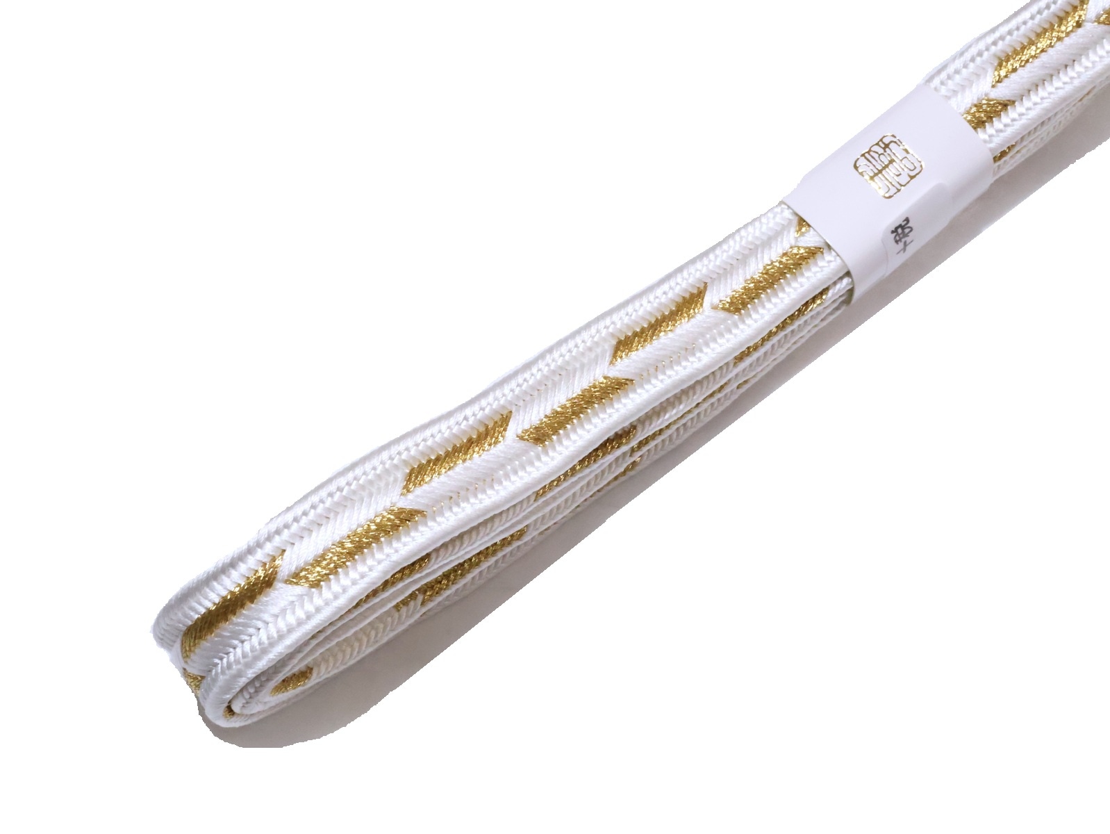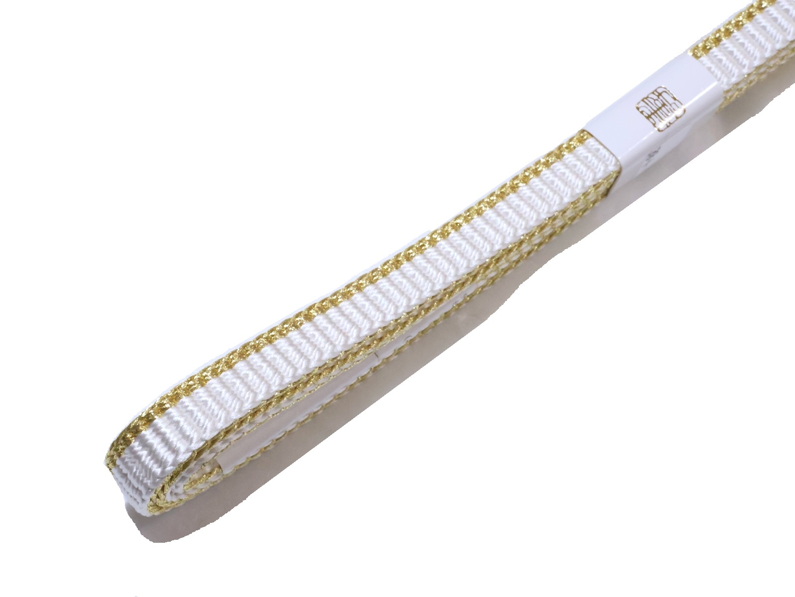 ・長尺正絹帯締め(畝打組)「アイボリー色の地に中央に白色と墨色」