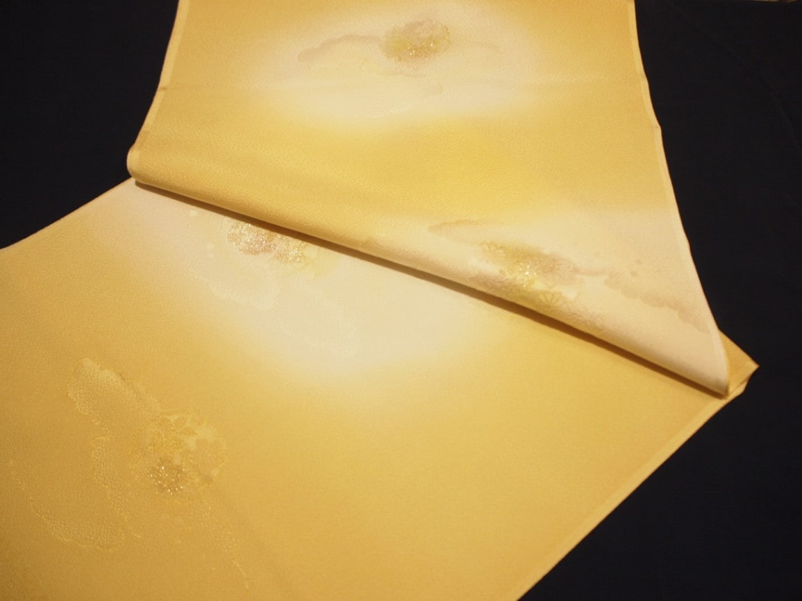 正絹帯揚げ「クリームベージュ色のぼかしの地に雪輪と雲取りの模様」