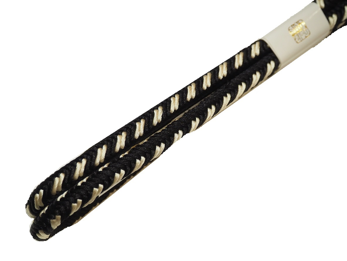 ・長尺正絹帯締め(平組)「紺色の地に薄グレー色の斜めライン」