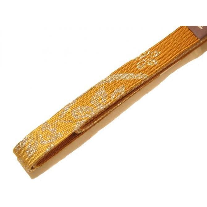 ・長尺正絹帯締め(平組)「ローズ色の地に金糸(矢羽根模様)」