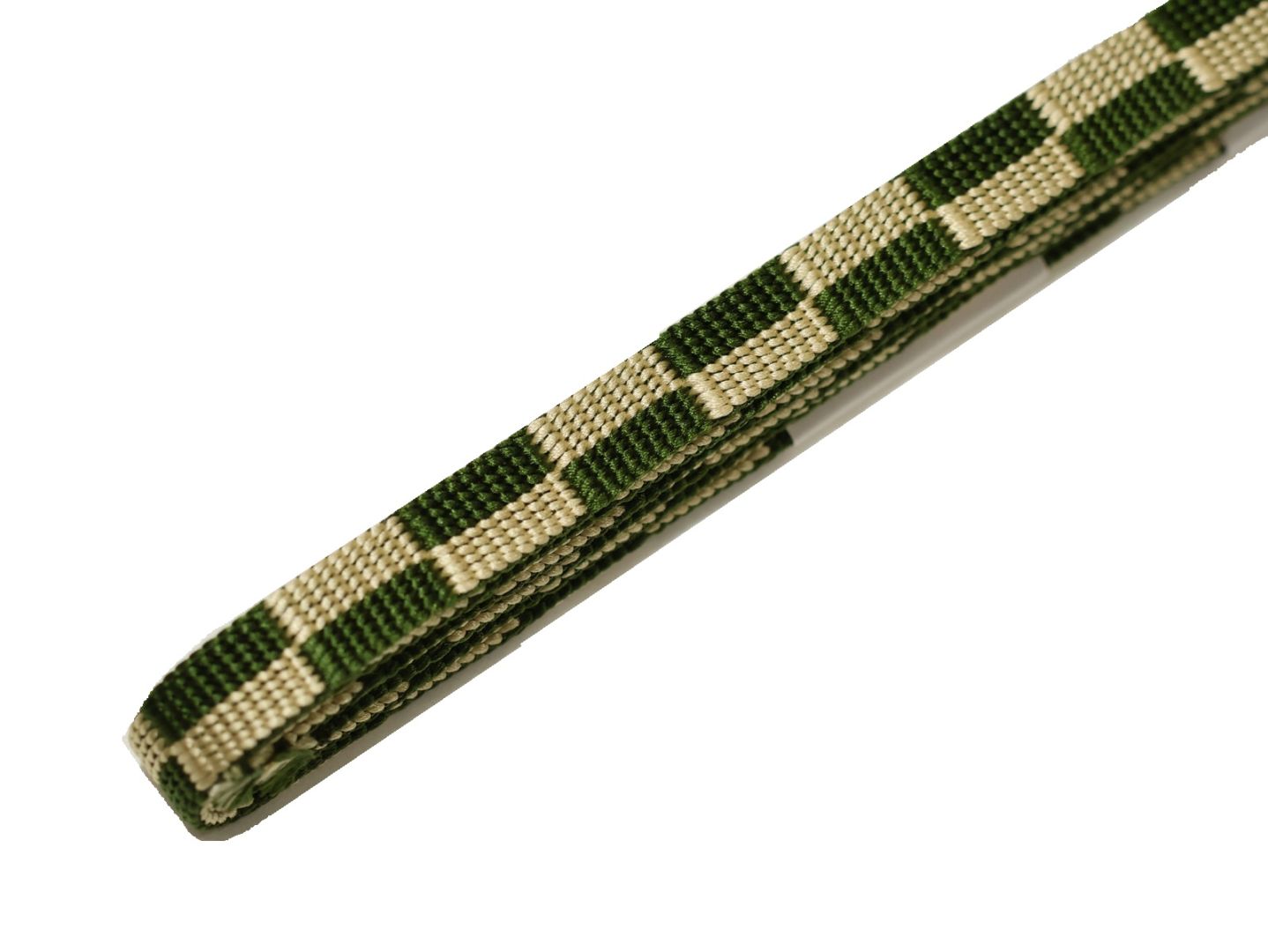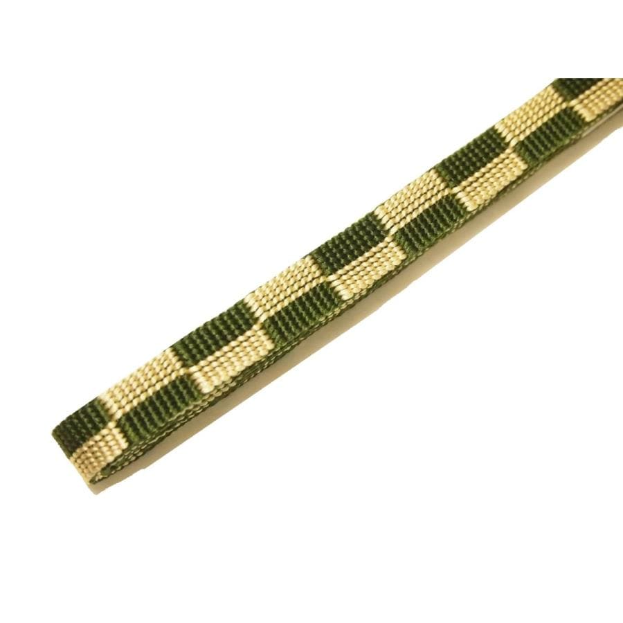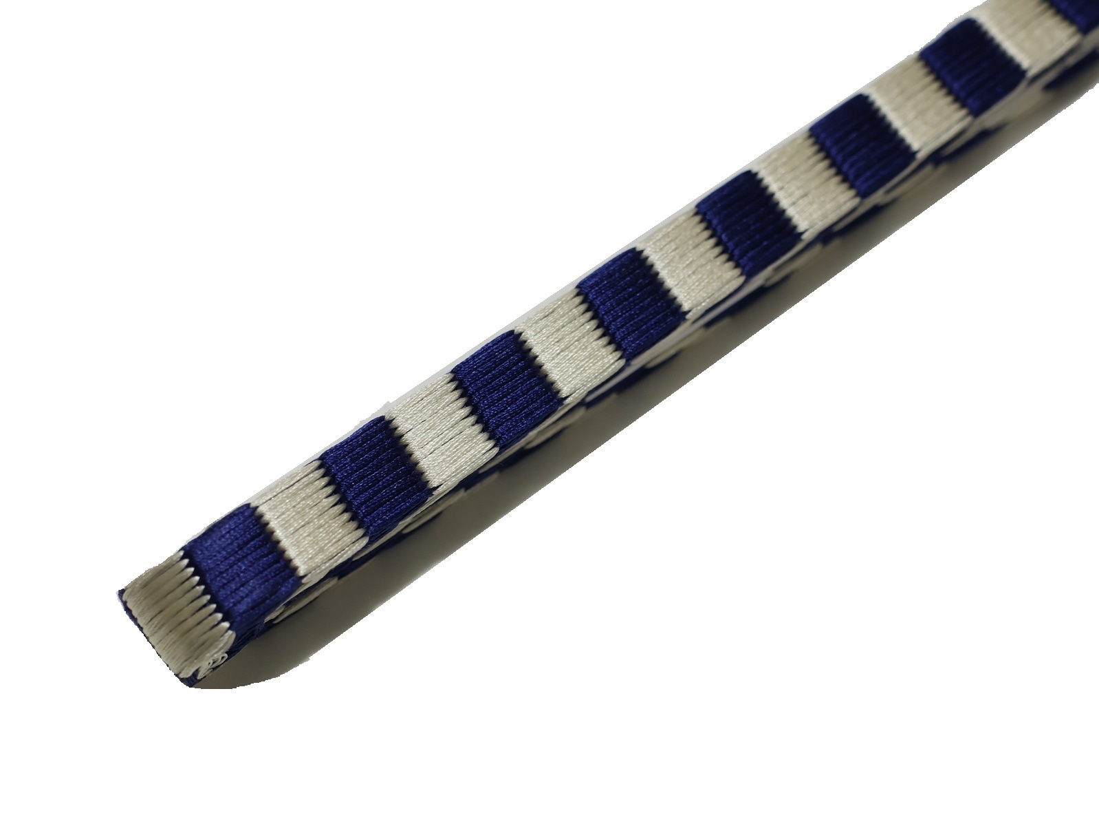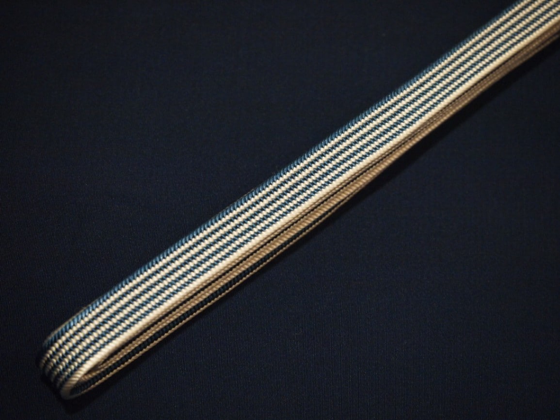 ・正絹三分紐「青色の地にオレンジ色とアイボリー色の市松模様」