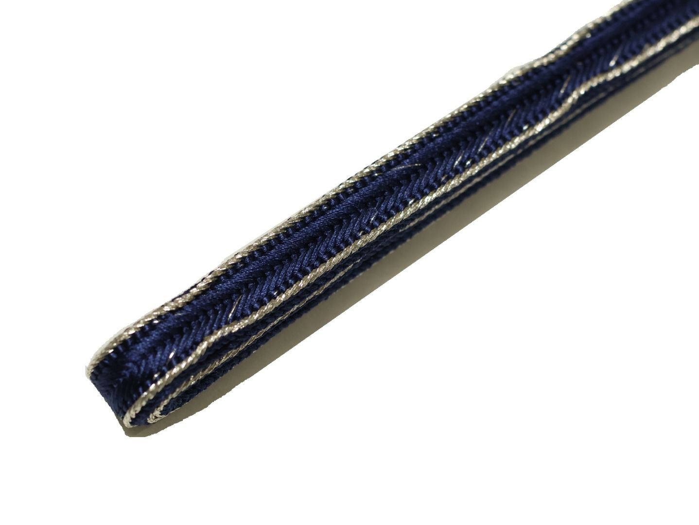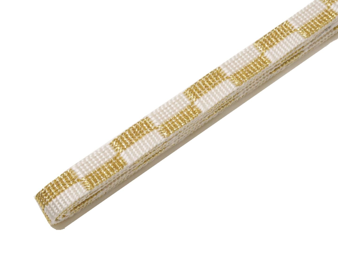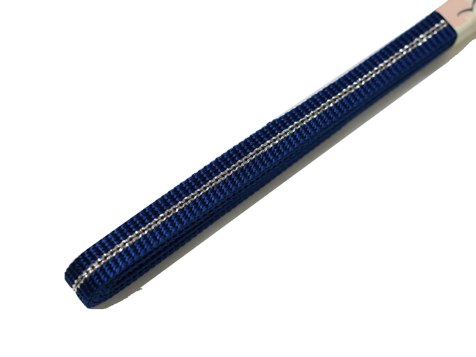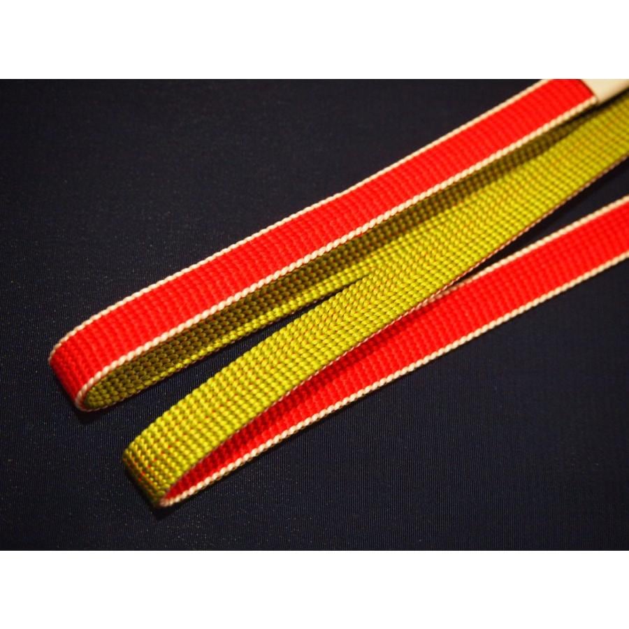 ・正絹三分紐「青色の地にオレンジ色とアイボリー色の市松模様」